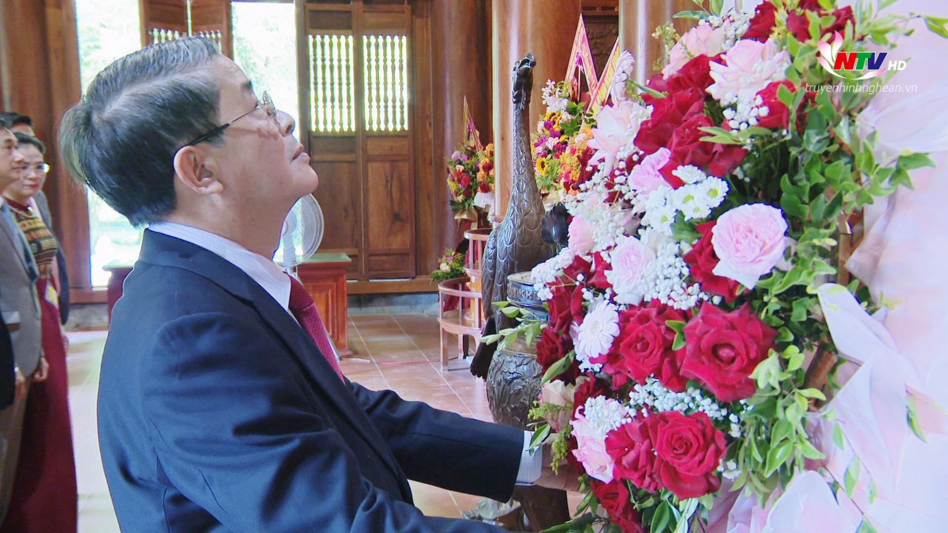 | Đồng chí Nguyễn Đức Hải - Ủy viên Ban Chấp hành Trung ương Đảng, Phó Chủ tịch Quốc hội cùng đoàn đại biểu Trung ương, tỉnh Nghệ An về Khu Di tích Kim Liên thành kính dâng hoa, dâng hương tưởng niệm Chủ tịch Hồ Chí Minh. |