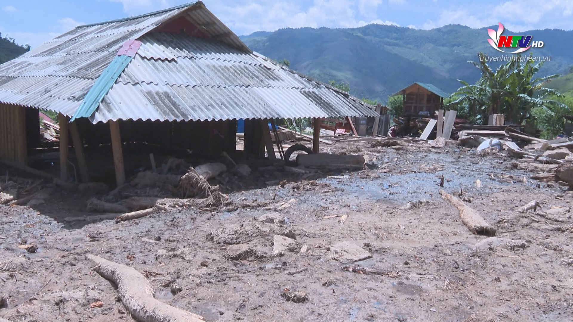 | Nhà cửa của người dân Tương Dương bị thiệt hại nằng nề sau trận lũ quét. |
