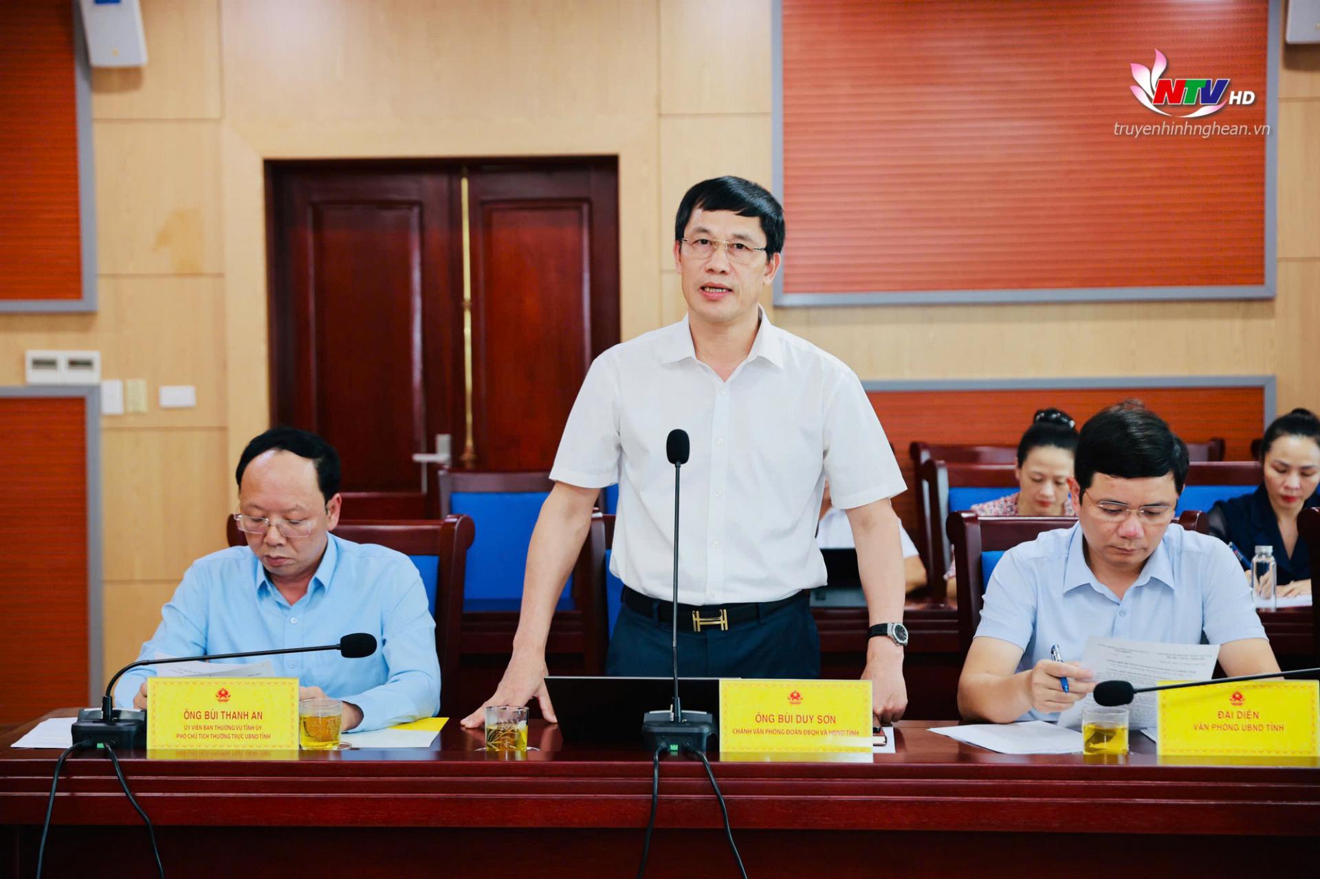 | Đồng chí Bùi Duy Sơn - Chánh Văn phòng Đoàn ĐBQH và HĐND tỉnh phát biểu tại cuộc làm việc. |