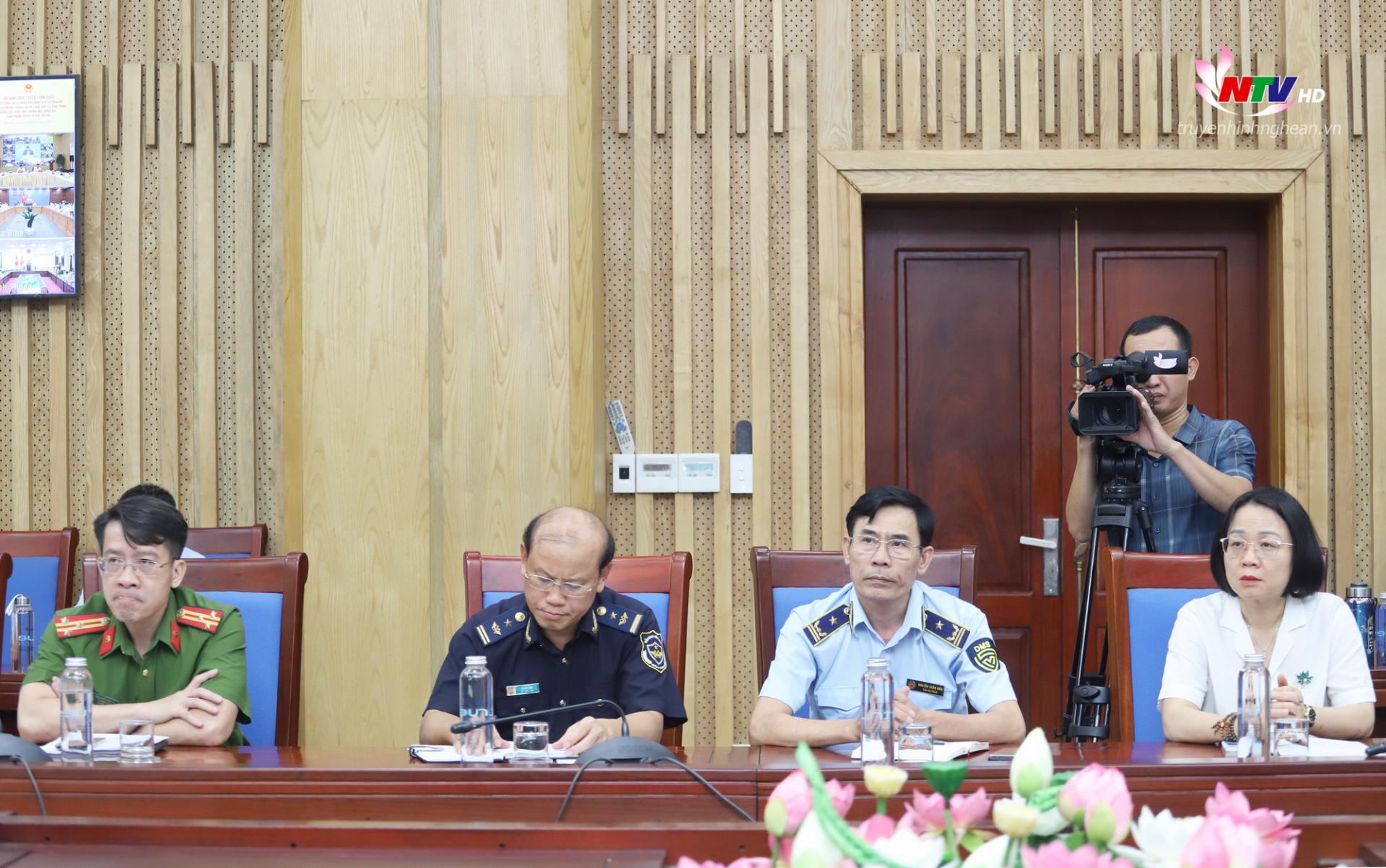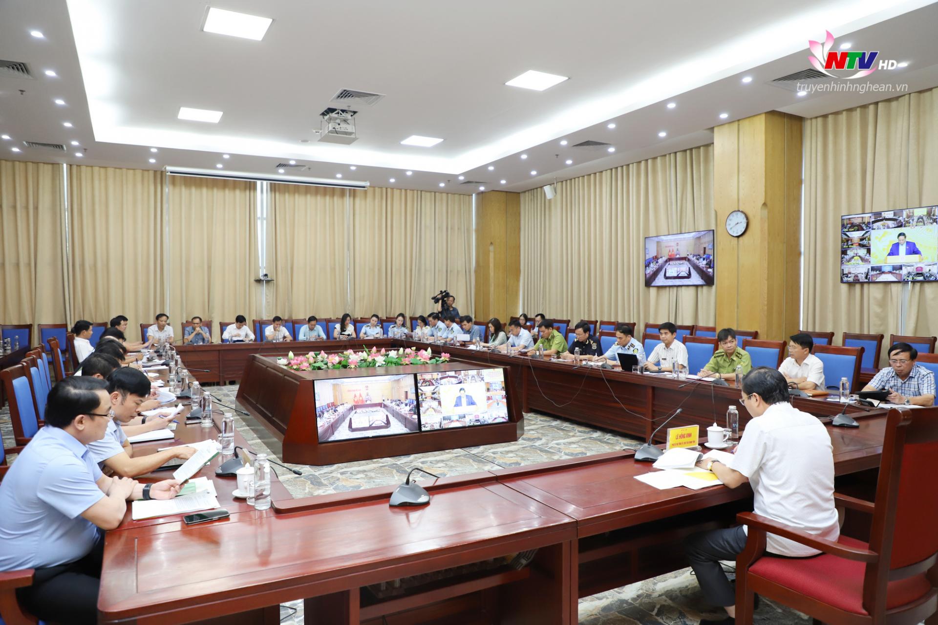 Hội nghị trực tiếp tại Trụ sở Chính phủ kết nối tới Trụ sở UBND các tỉnh, thành phố trực thuộc Trung ương. Đồng chí Lê Hồng Vinh - Phó Bí thư Tỉnh uỷ, Chủ tịch UBND tỉnh chủ trì tại điểm cầu UBND tỉnh Nghệ An; cùng dự có đồng chí Phùng Thành Vinh - Phó Chủ tịch UBND tỉnh và các thành viên Ban Chỉ đạo 389 tỉnh.