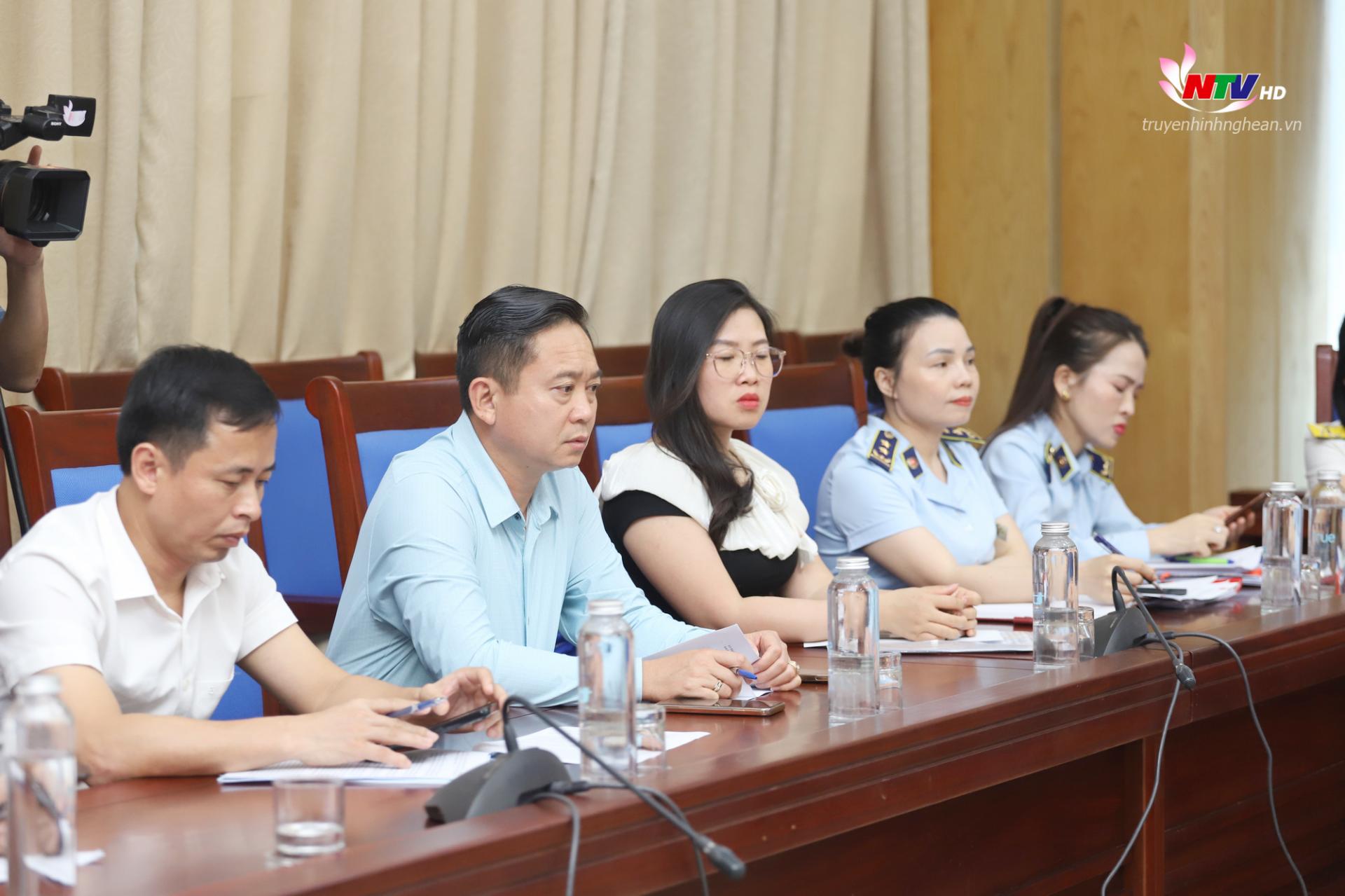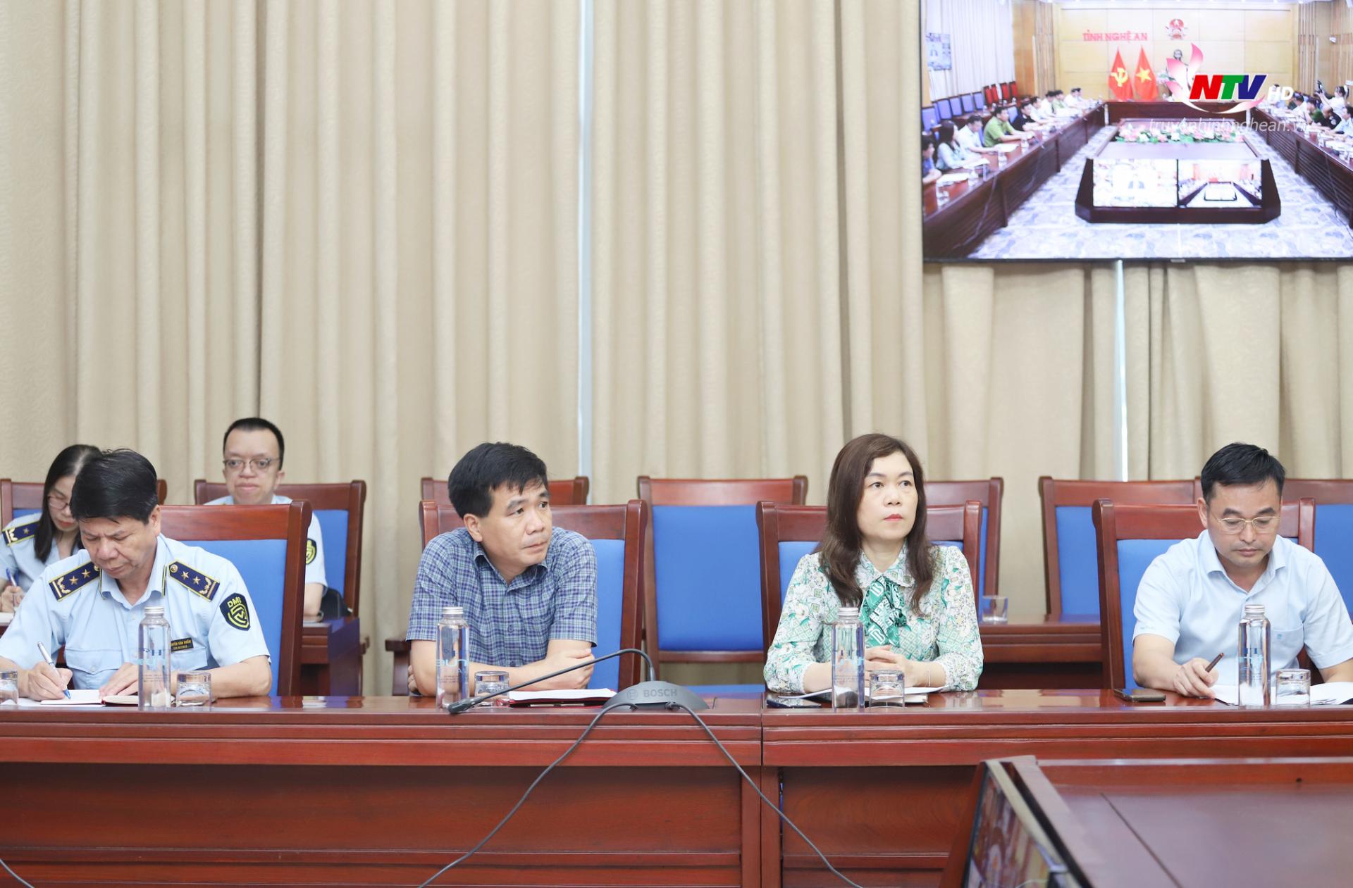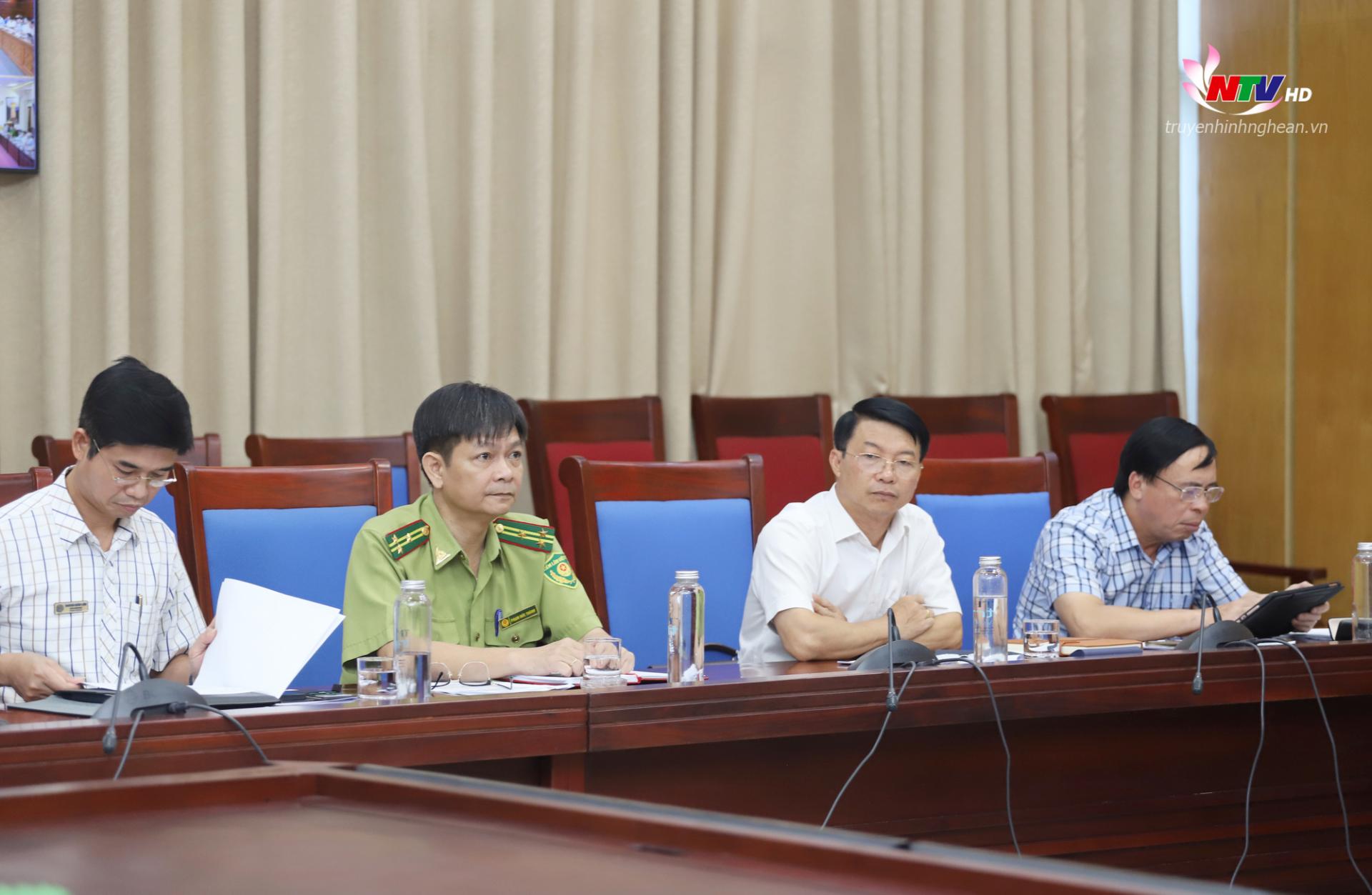 | Lãnh đạo các Sở, ban ngành dự hội nghị tại điểm cầu Nghệ An. |