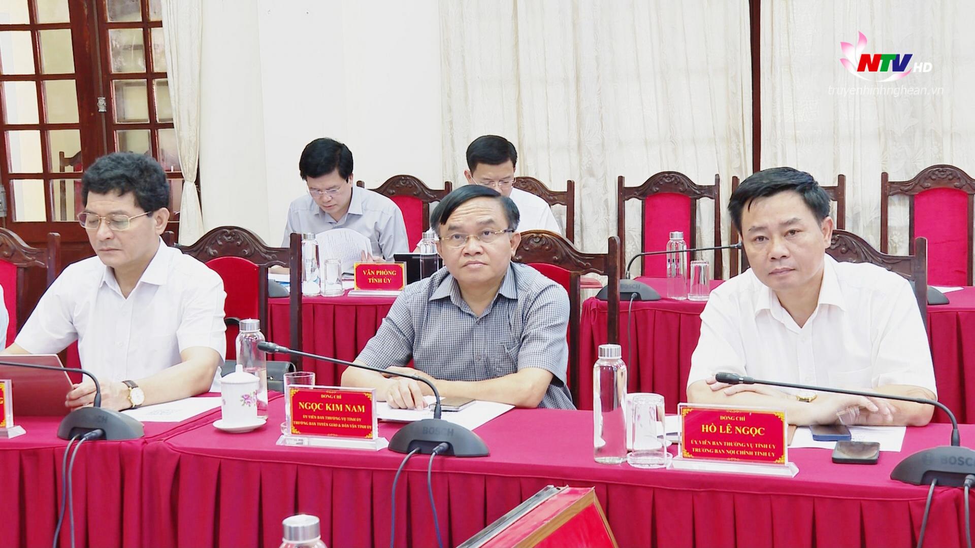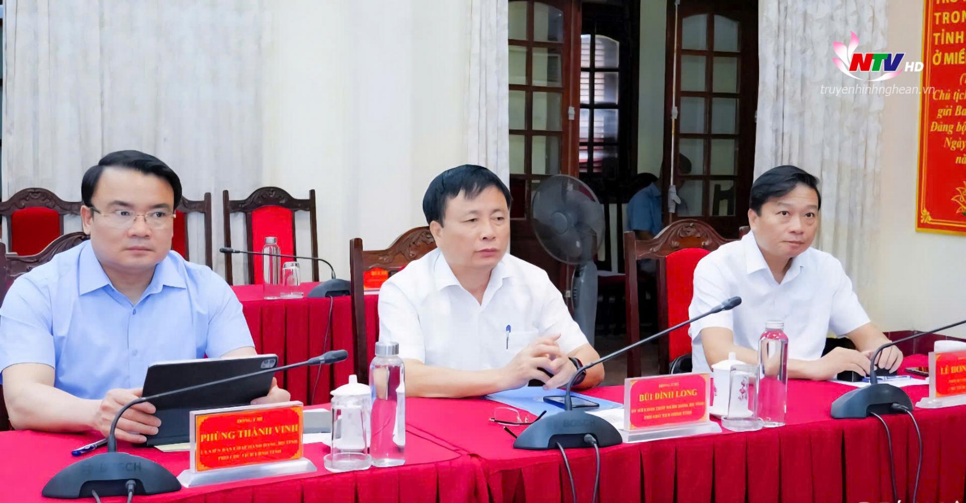 Tại điểm cầu tỉnh Nghệ An, đồng chí Hoàng Nghĩa Hiếu - Phó Bí thư Thường trực Tỉnh ủy, Chủ tịch HĐND tỉnh chủ trì. Tham dự hội nghị có đồng chí Lê Hồng Vinh - Phó Bí thư Tỉnh ủy, Chủ tịch UBND tỉnh; các đồng chí Ủy viên Ban Thường vụ Tỉnh ủy: Lê Đức Cường - Trưởng ban Tổ chức Tỉnh uỷ; Phạm Trọng Hoàng - Chủ nhiệm Ủy ban Kiểm tra Tỉnh ủy; Ngọc Kim Nam - Trưởng ban Tuyên giáo và Dân vận Tỉnh ủy; Hồ Lê Ngọc - Trưởng ban Nội chính Tỉnh ủy; cùng các đồng chí Phó Chủ tịch UBND tỉnh, lãnh đạo các sở, ban, ngành.