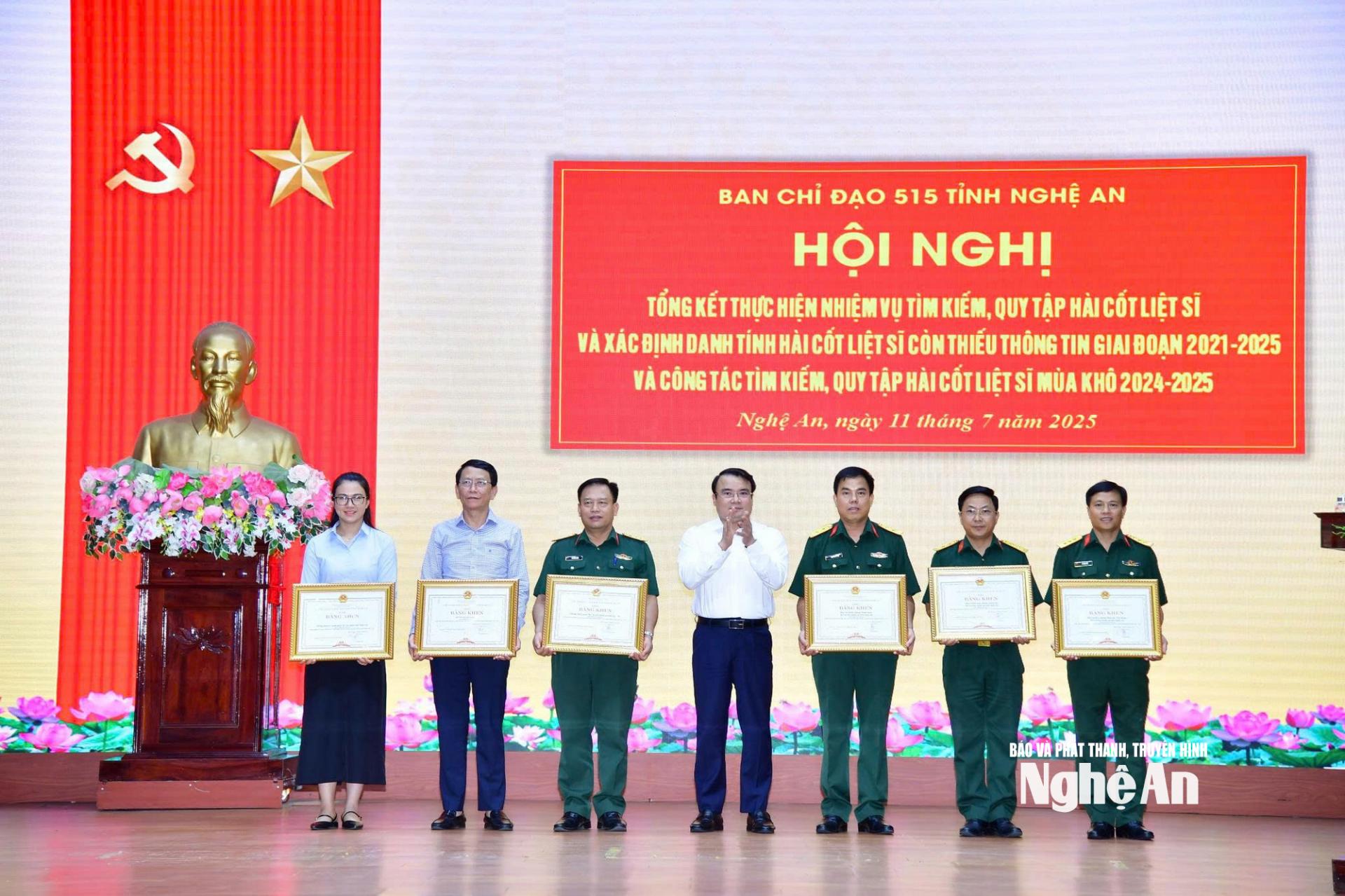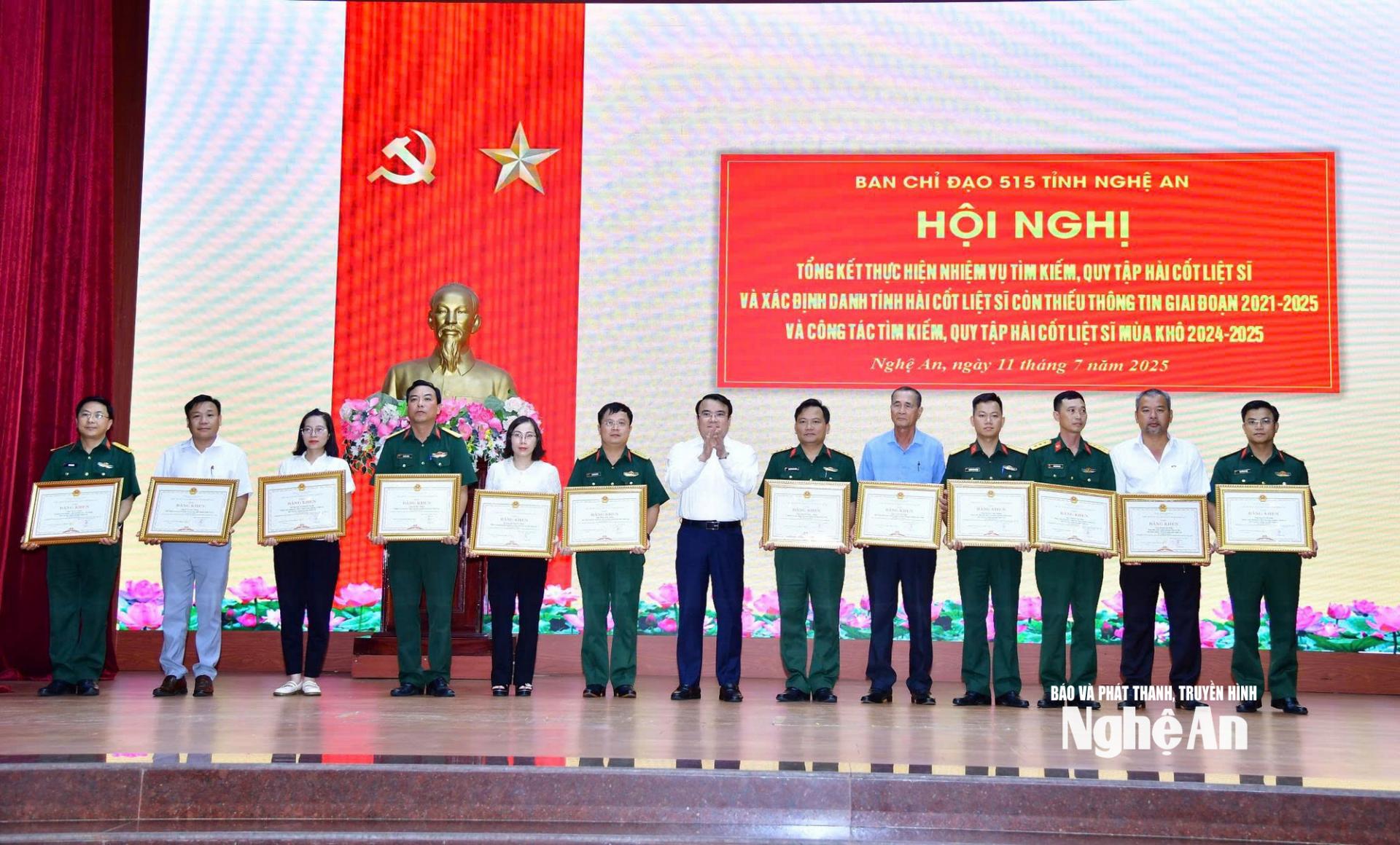 Dịp này BCĐ 515 tỉnh, Bộ CHQS Tỉnh đã biểu dương, khen thưởng các tập thể, cá nhân có thành tích xuất sắc trong công tác tìm kiếm, quy tập hài cốt liệt sĩ và xác định danh tính hài cốt liệt sỹ còn thiếu thông tin giai đoạn 2021 – 2025 và mùa khô 2024 – 2025.