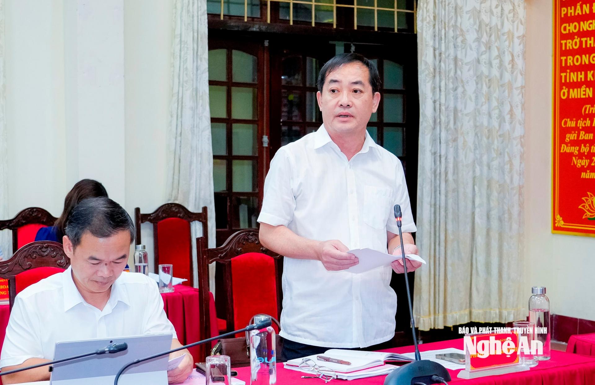 | Đồng chí Nguyễn Quý Linh - Giám đốc Sở Khoa học và Công nghệ đóng góp ý kiến vào nội dung Đại hội Đảng bộ phường Thành Vinh. |