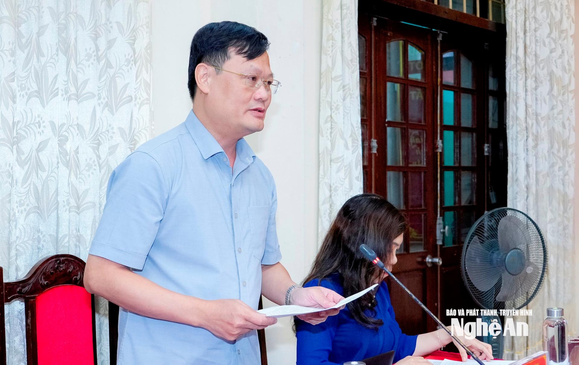 Định hướng trong nhiệm kỳ tới, Phó Chủ tịch UBND tỉnh đề nghị phường rà soát lại các chỉ tiêu phù hợp. Bổ sung, định hướng rõ các lĩnh vực để thu hút đầu tư, quan tâm thu hút đầu tư dọc sông Vinh; có giải pháp đào tạo nguồn nhân lực chất lượng cao; tăng cường liên kết vùng và phát triển đô thị văn minh, hiện đại...