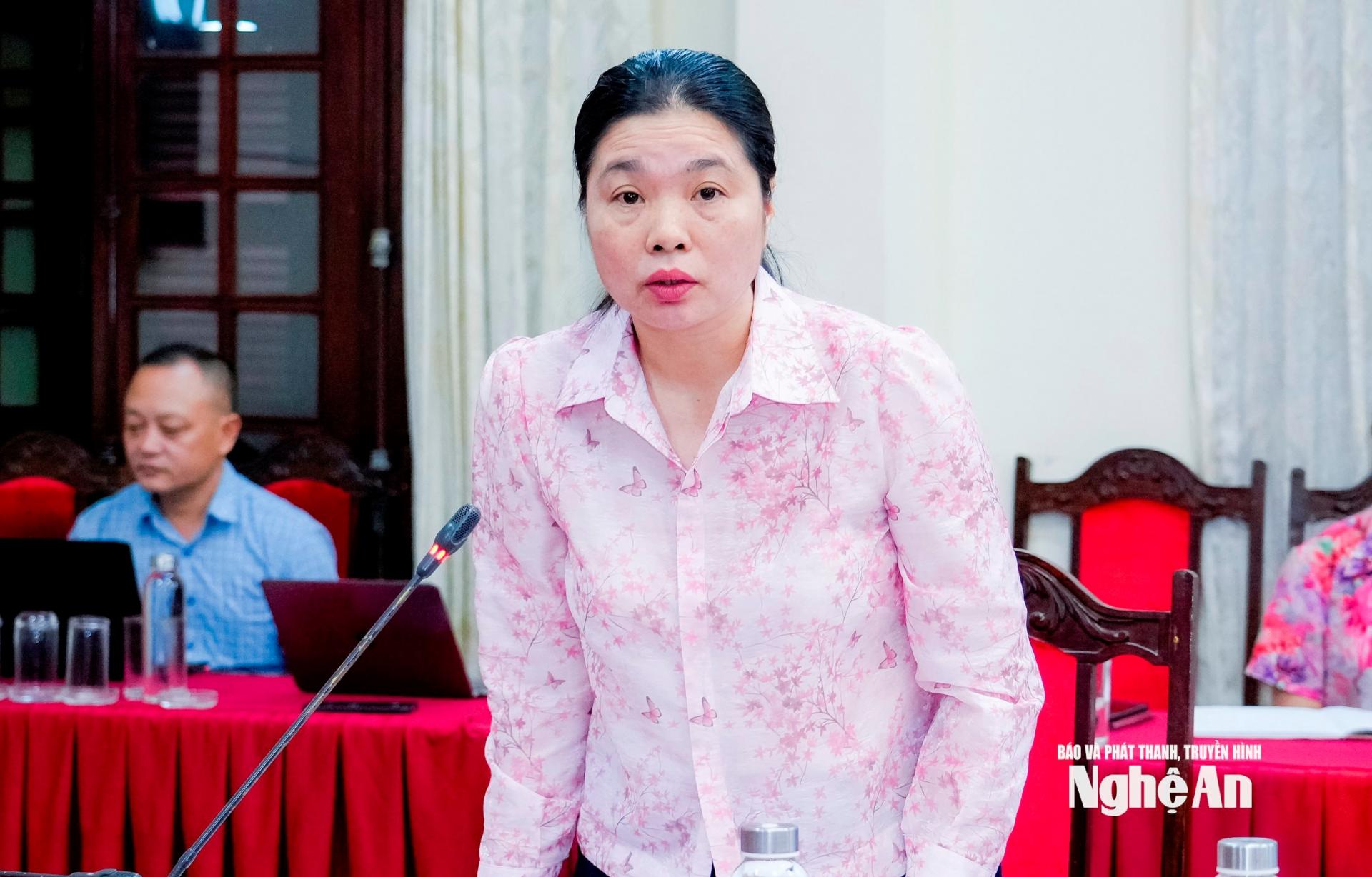 | Đồng chí Hồ Thị Châu Loan - Phó Giám đốc Sở GD&ĐT đóng góp ý kiến vào nội dung Đại hội Đảng bộ phường Thành Vinh. |
