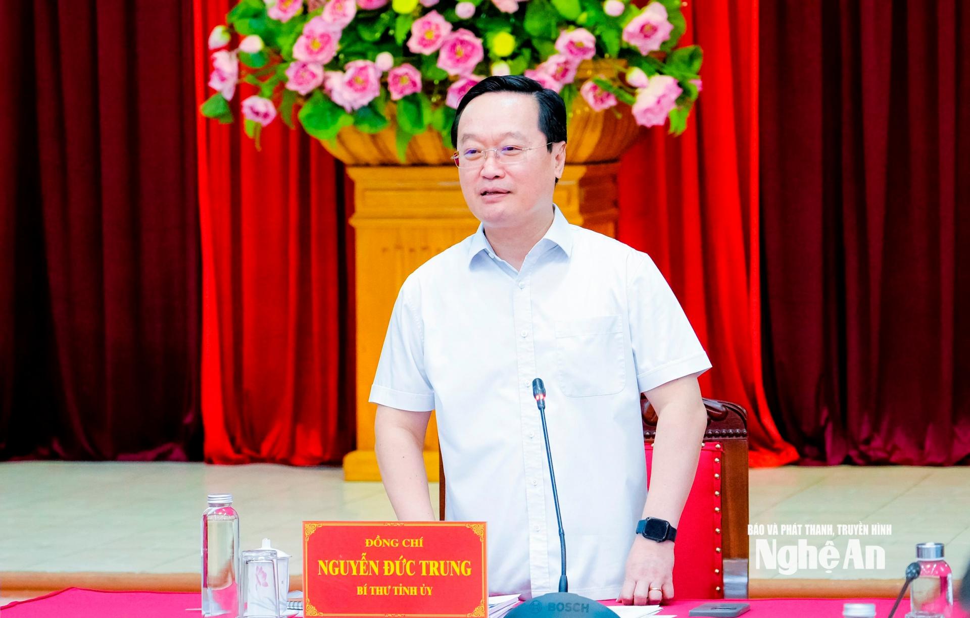 | Đồng chí Nguyễn Đức Trung - Bí thư Tỉnh ủy, Tổ trưởng Tổ công tác số 1 kết luận hội nghị. |