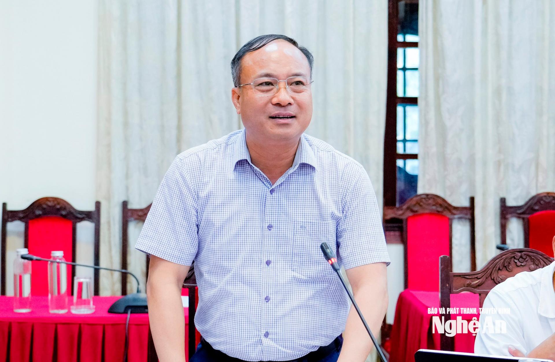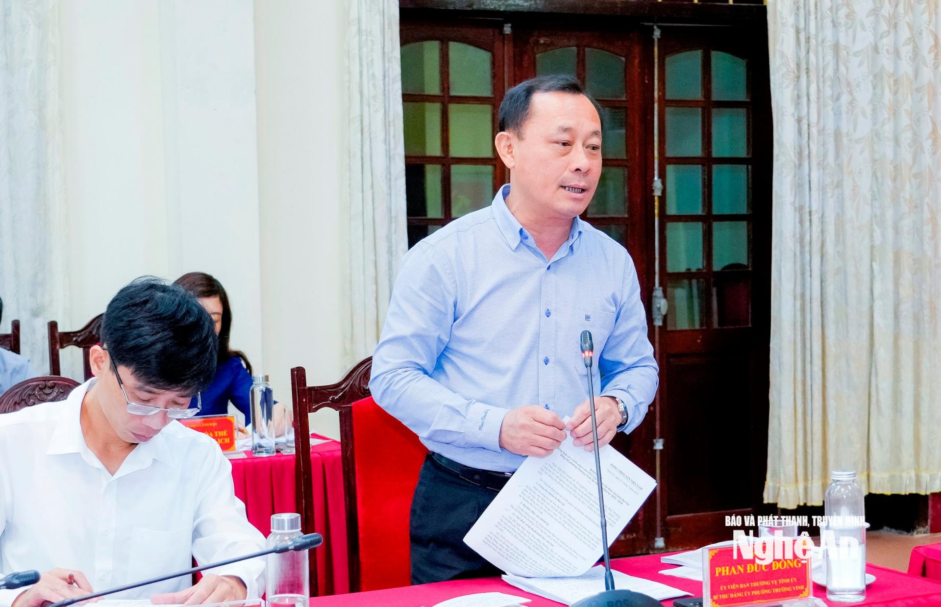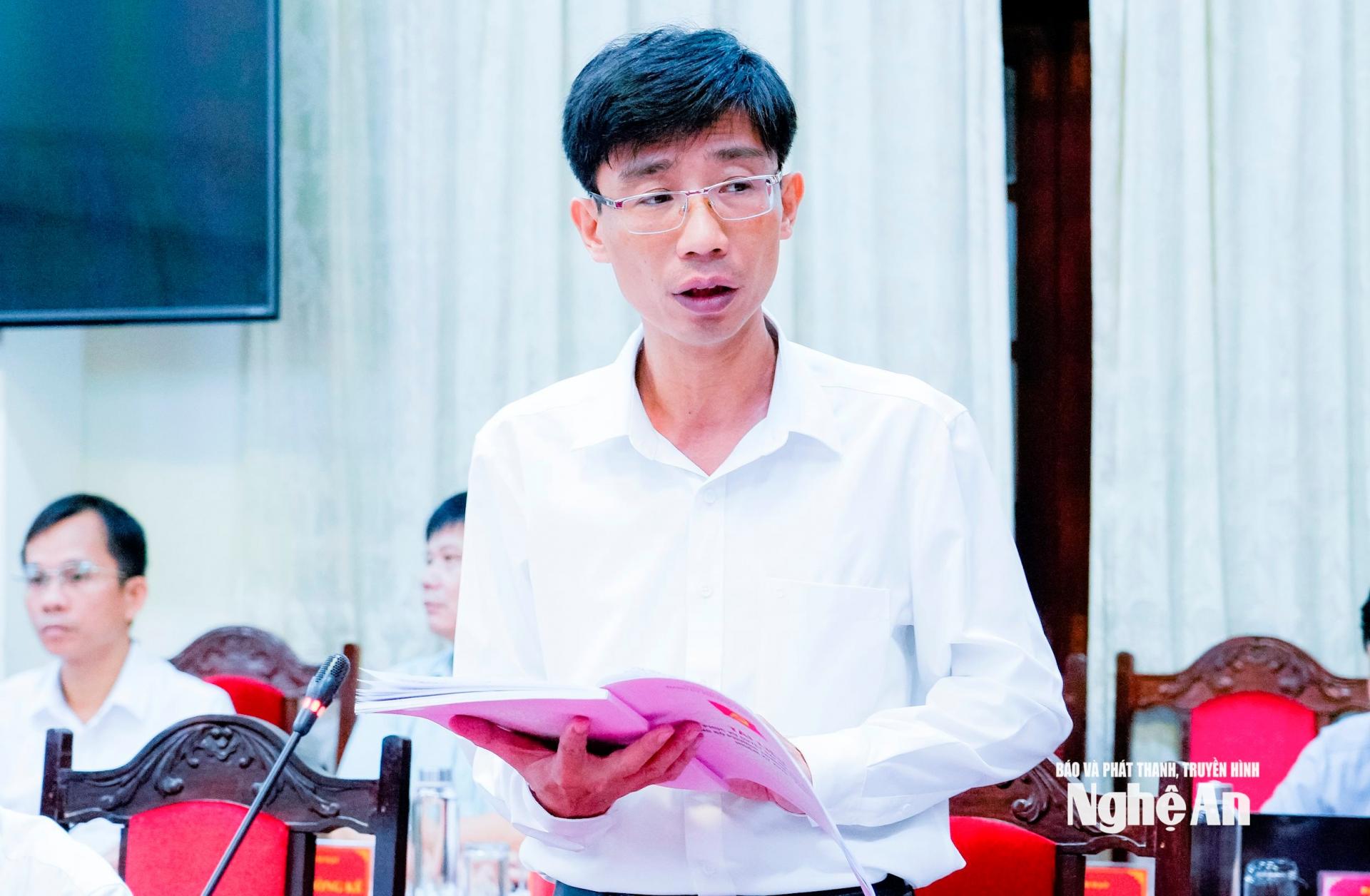 | Đồng chí Nguyễn Viết Hưng - Ủy viên Ban Chấp hành Đảng bộ tỉnh, Giám đốc Sở Nội vụ đóng góp ý kiến vào nội dung Đại hội Đảng bộ phường Trường Vinh. |