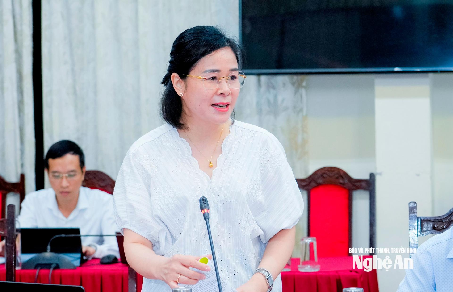 | Đồng chí Lê Thị Hoài Chung - Ủy viên Ban Chấp hành Đảng bộ tỉnh, Giám đốc Sở Y tế đóng góp ý kiến vào nội dung Đại hội Đảng bộ phường Trường Vinh. |