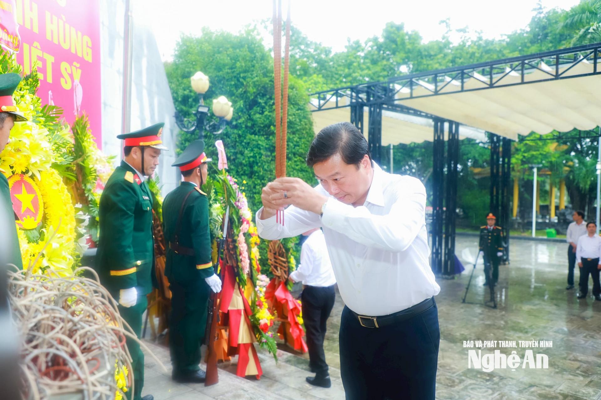 Trong không khí trang nghiêm và thành kính, đồng chí Lê Hồng Vinh - Phó Bí thư Tỉnh ủy, Chủ tịch UBND tỉnh Nghệ An cùng đoàn công tác dâng hoa, dâng hương tại Nhà thờ Chủ tịch Hồ Chí Minh và các Anh hùng liệt sĩ, tưởng nhớ công lao to lớn, sự hy sinh anh dũng của các thế hệ đi trước.