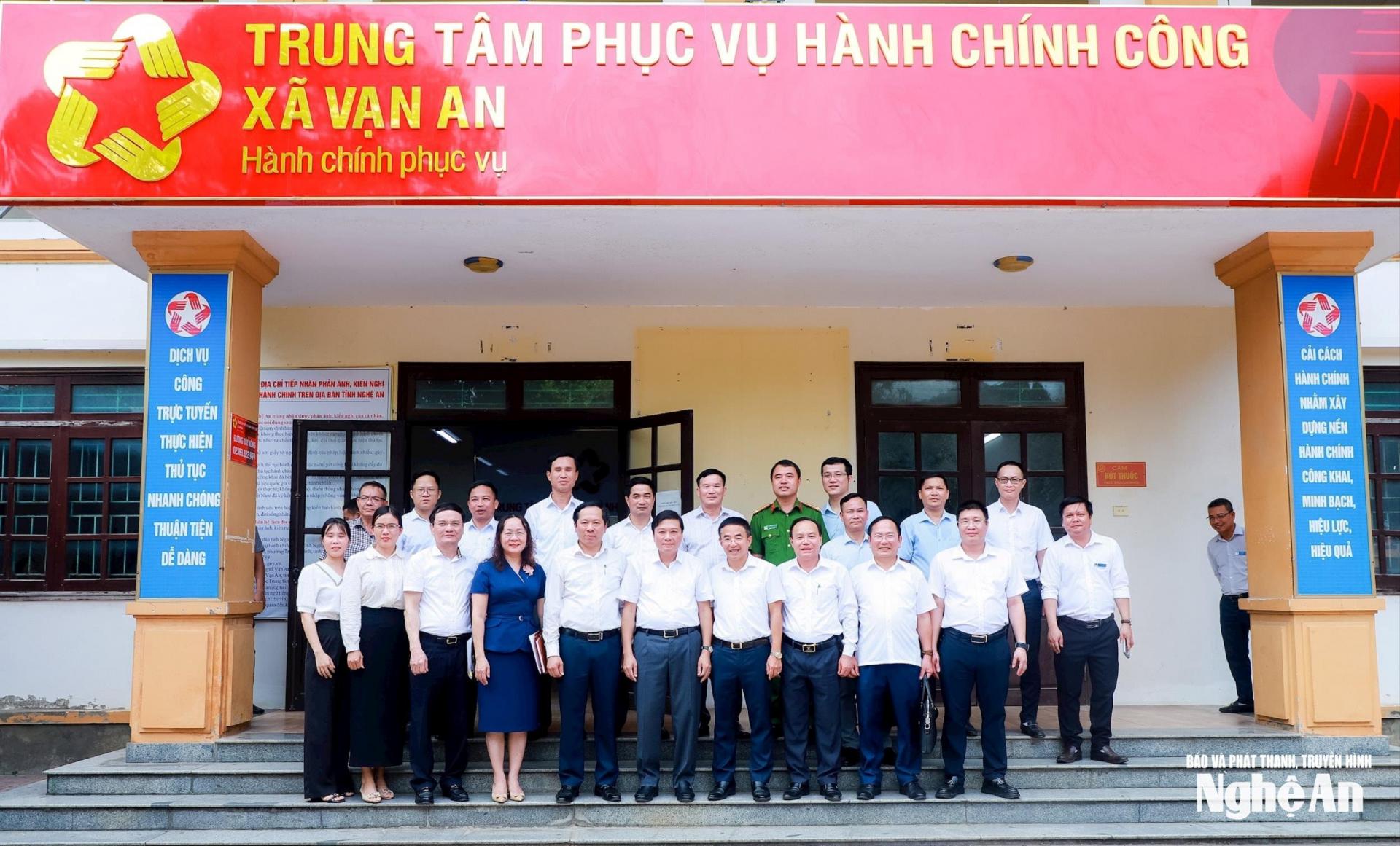 | Chủ tịch UBND tỉnh Nghệ An Lê Hồng Vinh và đoàn công tác chụp ảnh lưu niệm cùng lãnh đạo, cán bộ, công chức xã Vạn An. |