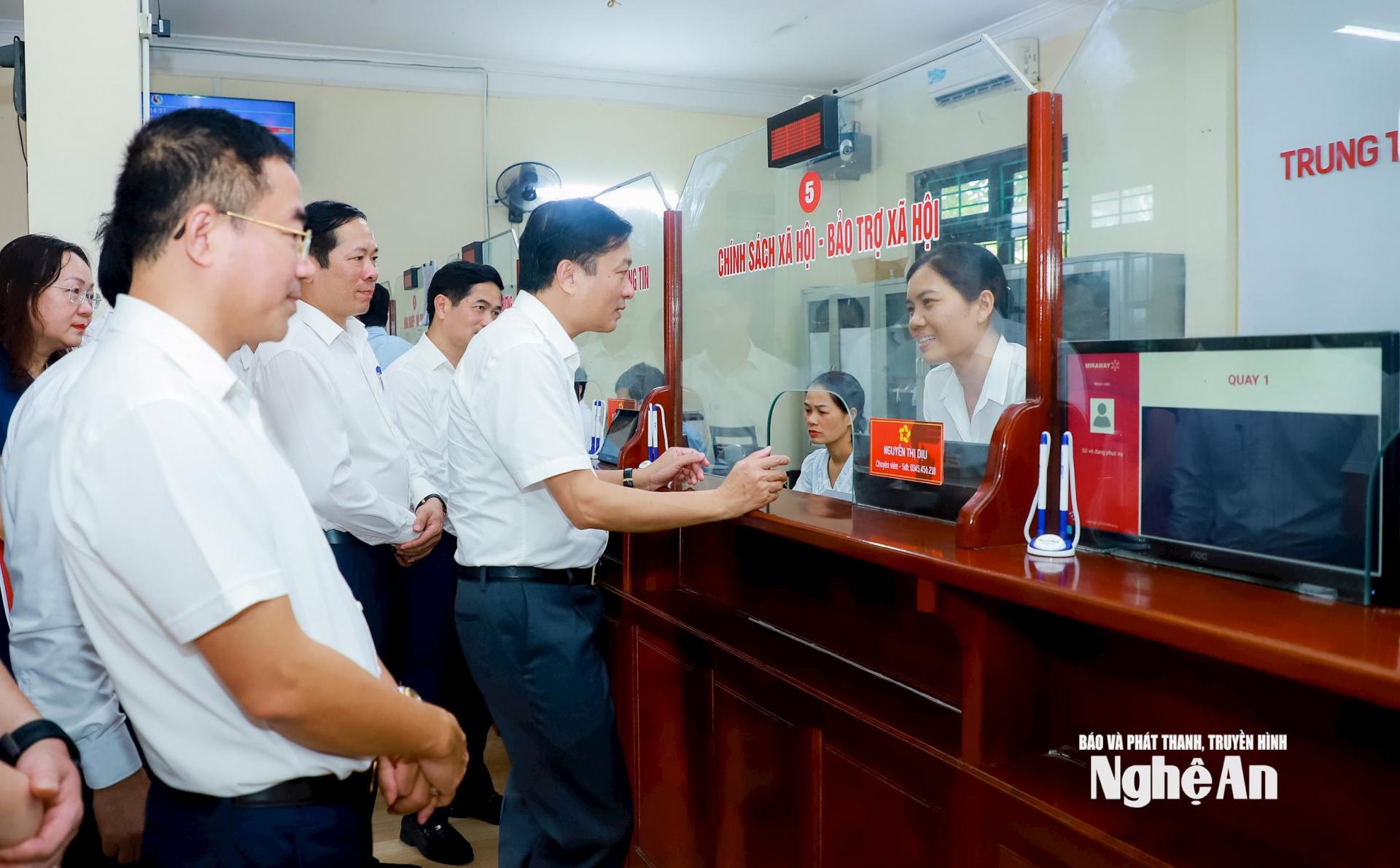 Tại đây, người đứng đầu UBND tỉnh Nghệ An dành thời gian trao đổi trực tiếp với cán bộ, công chức về các quy trình tiếp nhận và giải quyết thủ tục hành chính; hỏi cụ thể về việc triển khai phần mềm điện tử, số lượng, thời gian xử lý hồ sơ và những phát sinh trong vận hành thực tế.