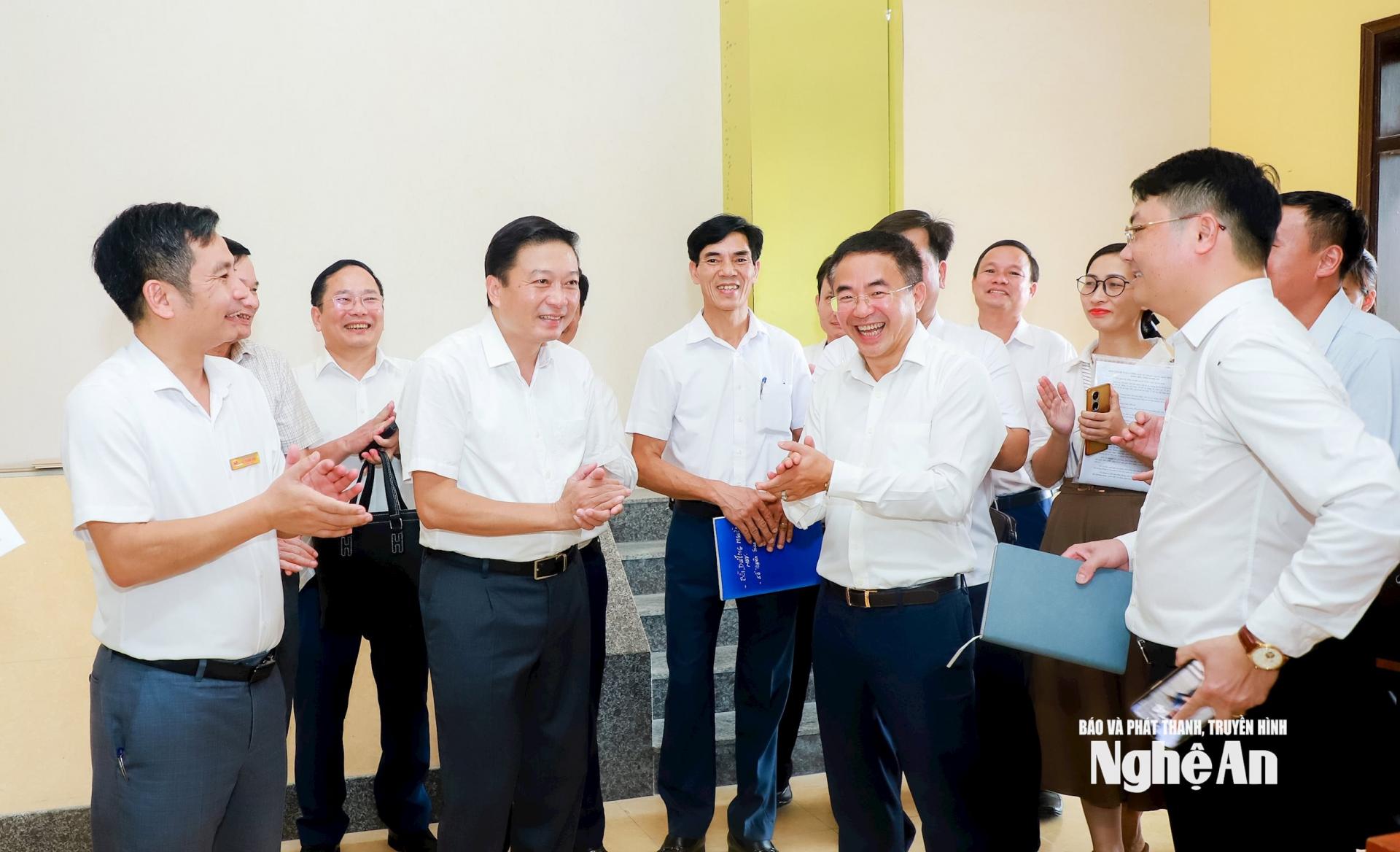 | Chủ tịch UBND tỉnh Lê Hồng Vinh chúc mừng những kết quả bước đầu sau hơn 10 ngày vận hành theo chính quyền địa phương 2 cấp của xã Kim Liên. |