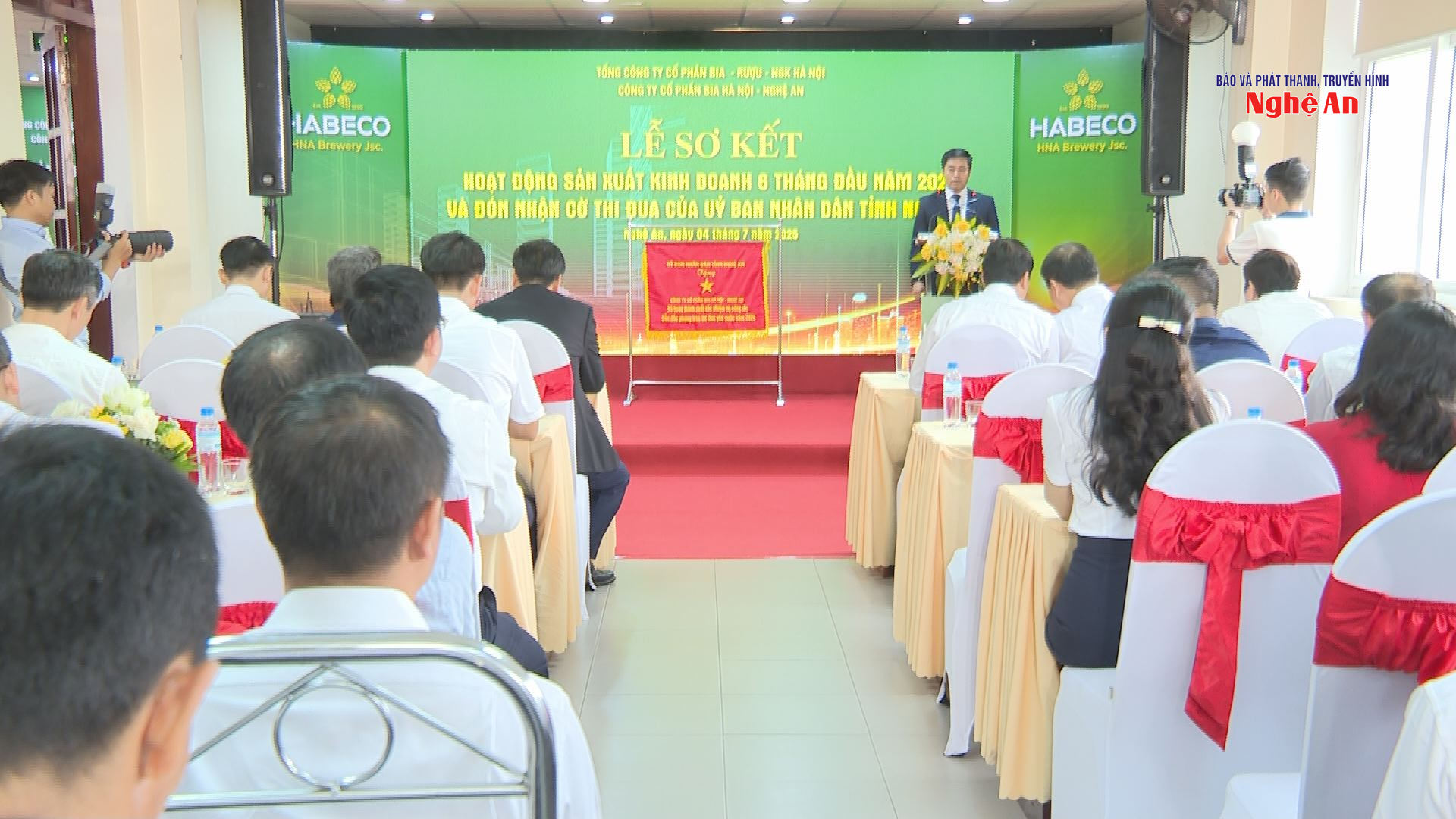 Tại buổi lễ, Chủ tịch UBND tỉnh Lê Hồng Vinh đã chúc mừng và trao cờ thi đua của UBND tỉnh cho Công ty Cổ phần bia Hà Nội - Nghệ An vì thành tích xuất sắc, dẫn đầu phong trào thi đua yêu nước năm 2024 trên địa bàn tỉnh.
