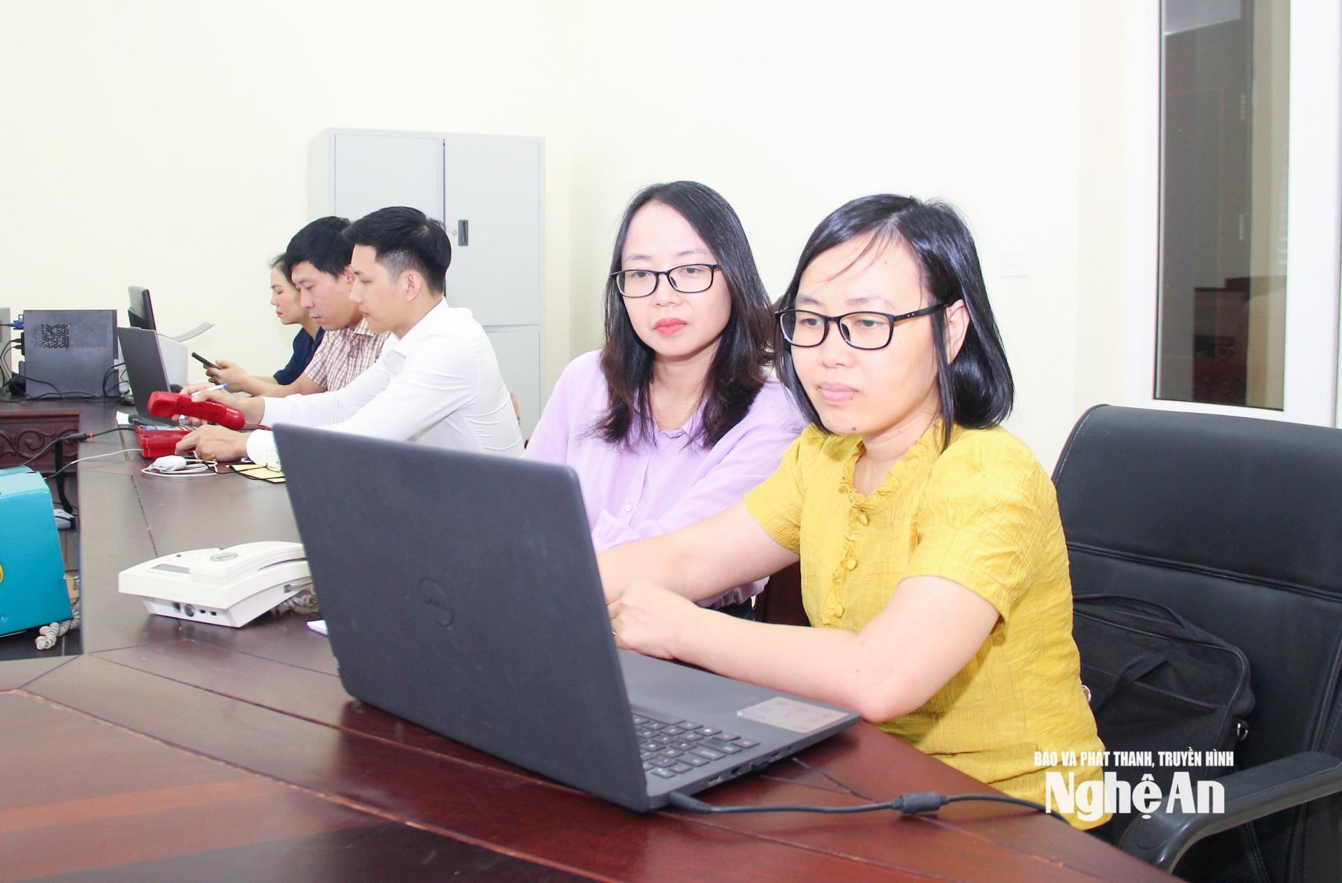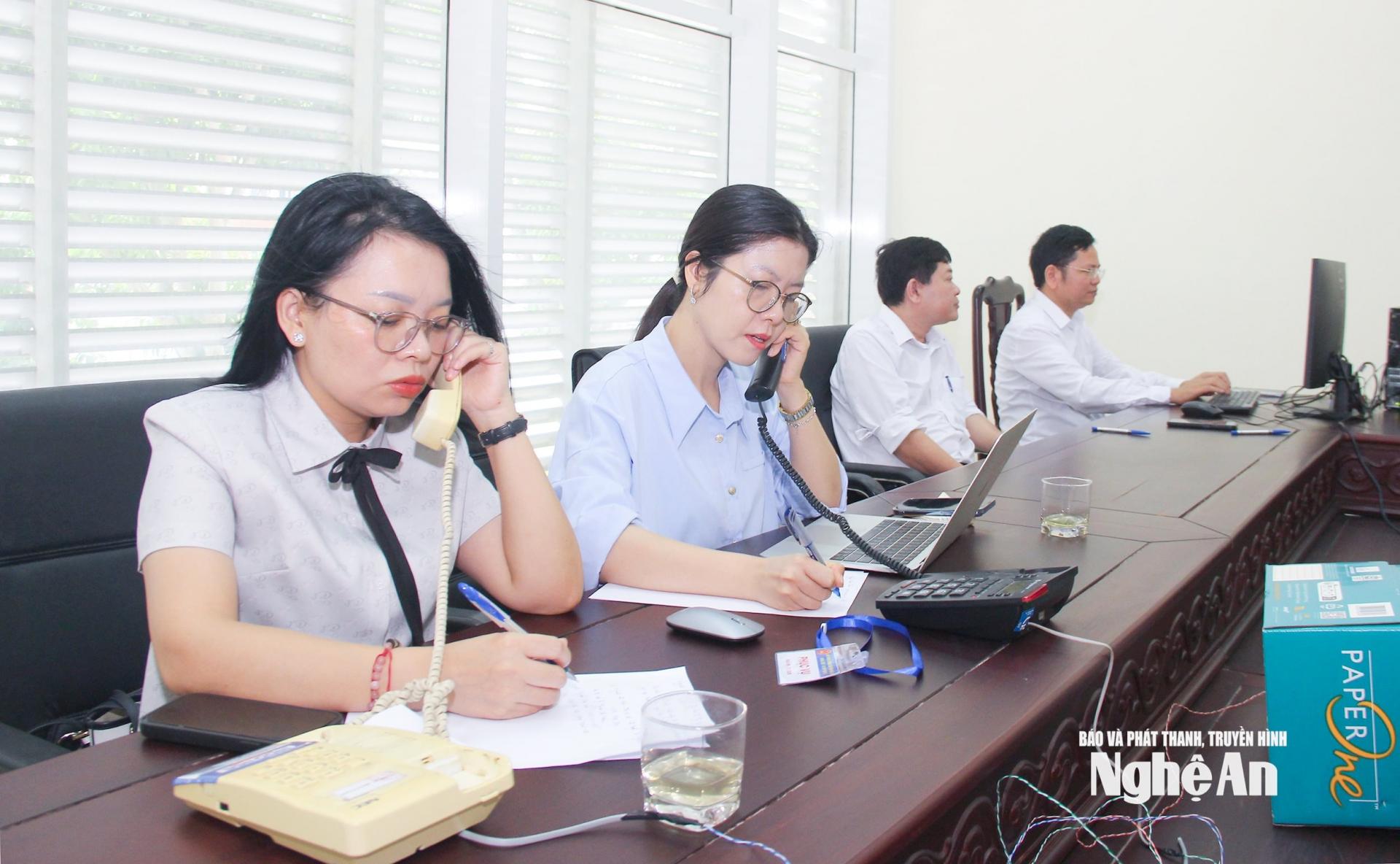 | Cán bộ, chuyên viên các sở, ngành cấp tỉnh tham gia trực đường dây điện thoại trực tuyến tại kỳ họp. |