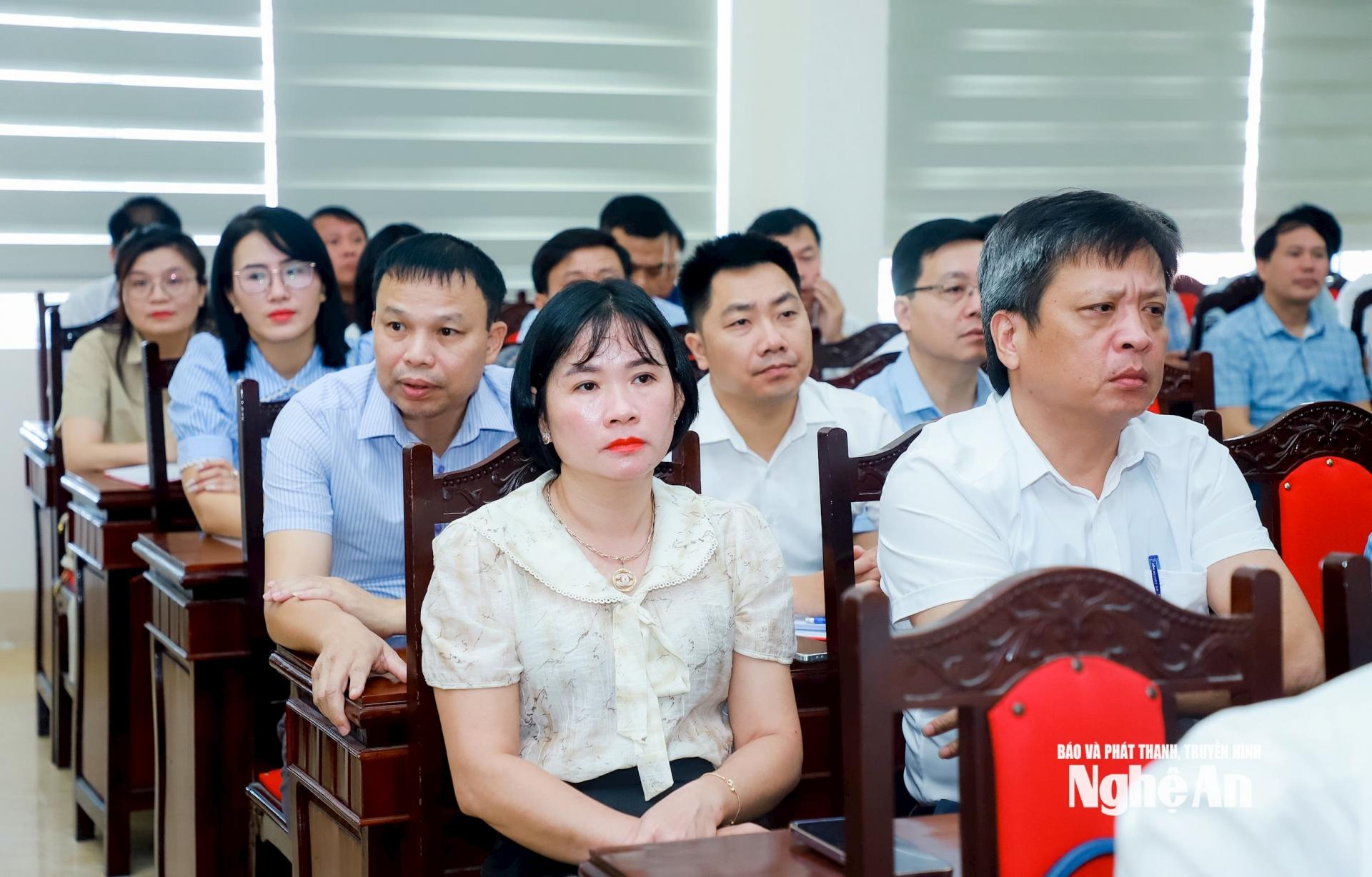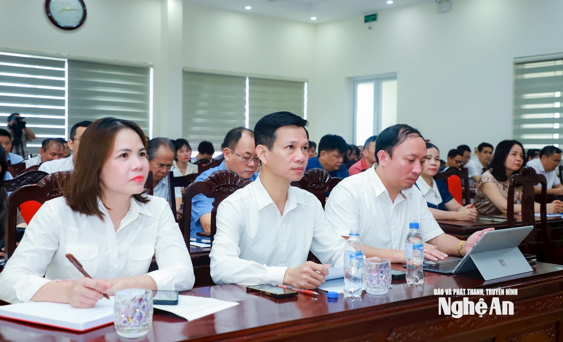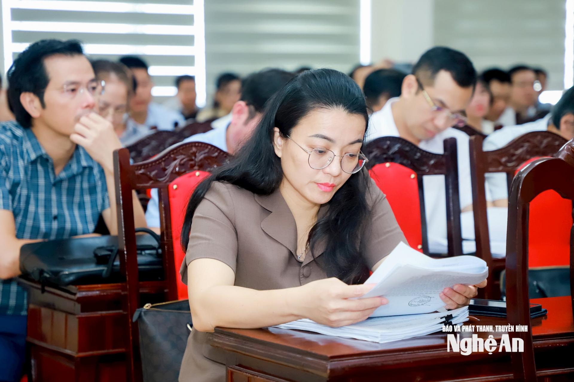 | Quang cảnh Hội nghị đóng góp ý kiến dự thảo văn kiện Đại hội đại biểu Đảng bộ tỉnh Nghệ An lần thứ XX, nhiệm kỳ 2025 - 2030 do Đảng ủy UBND tỉnh Nghệ An tổ chức sáng 14/7. |