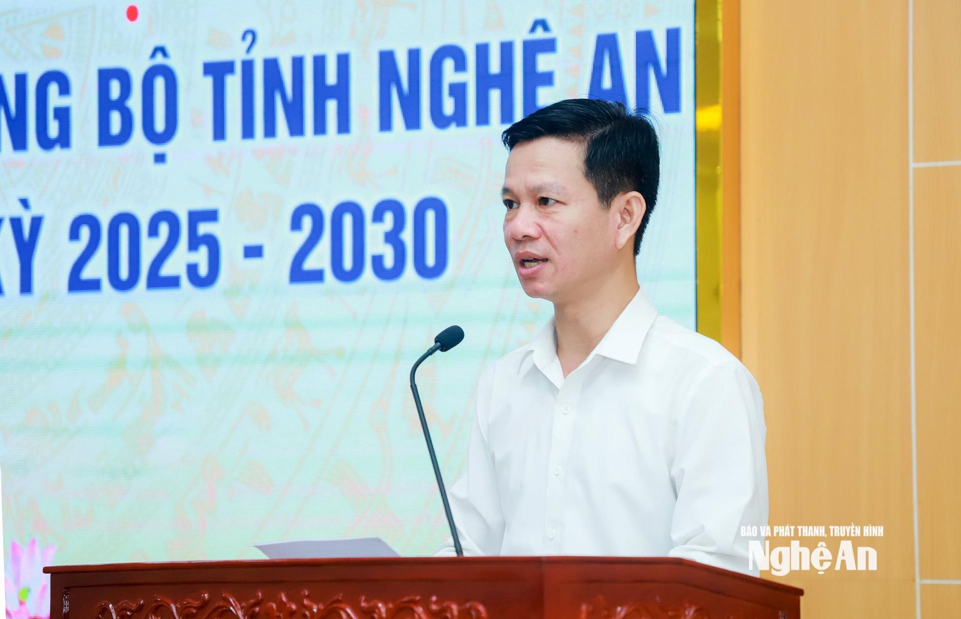 | Đồng chí Nguyễn Quốc Đạt - Phó Ban Tuyên giáo và Dân vận phát biểu mở đầu Hội nghị. |