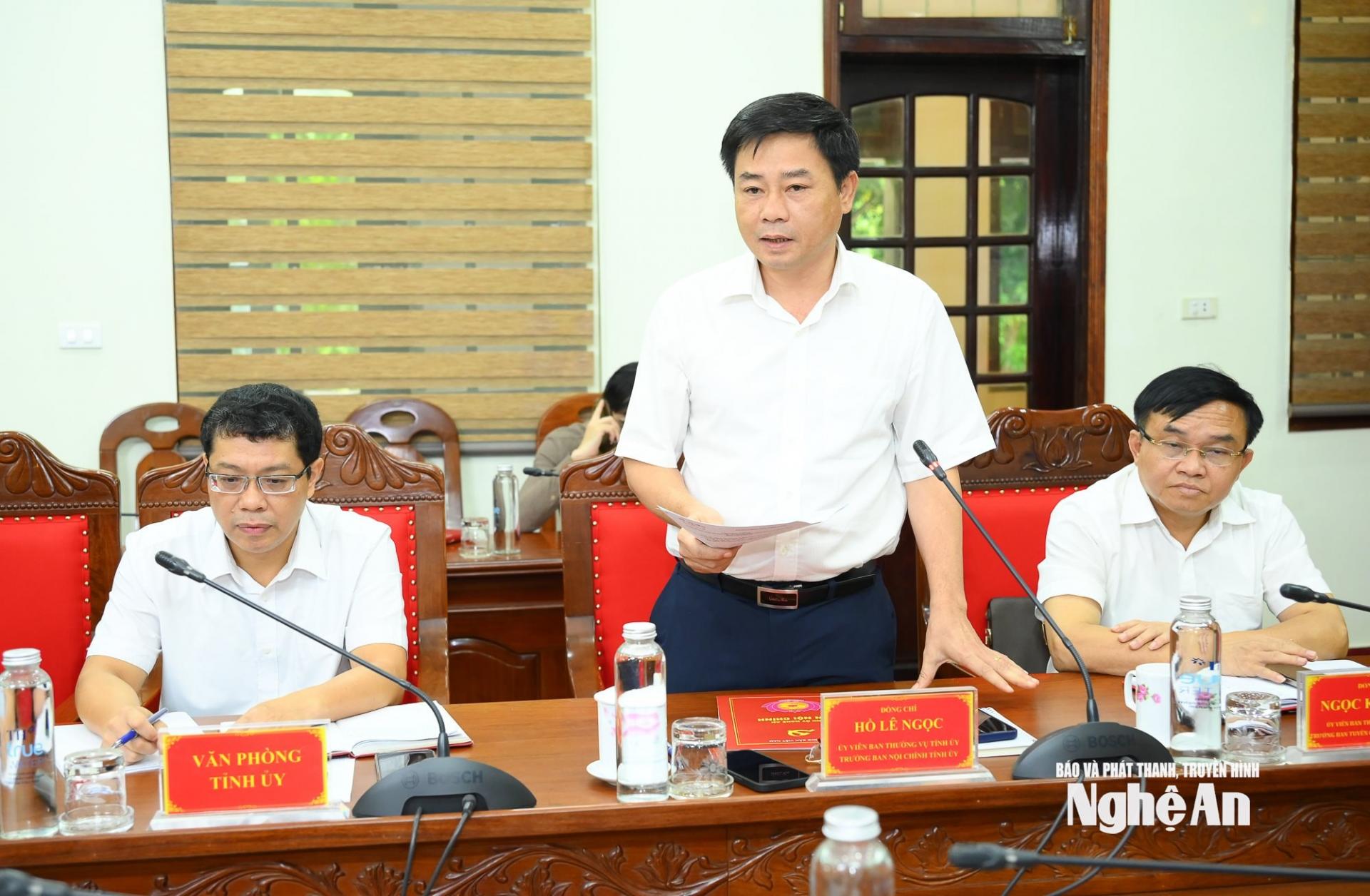 | Đồng chí Hồ Lê Ngọc - Ủy viên Ban Thường vụ, Trưởng ban Nội chính Tỉnh ủy phát biểu tại cuộc làm việc. |