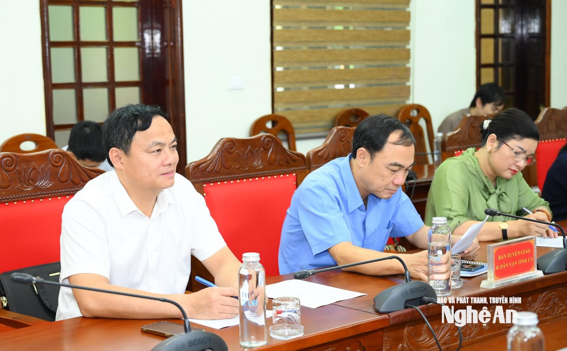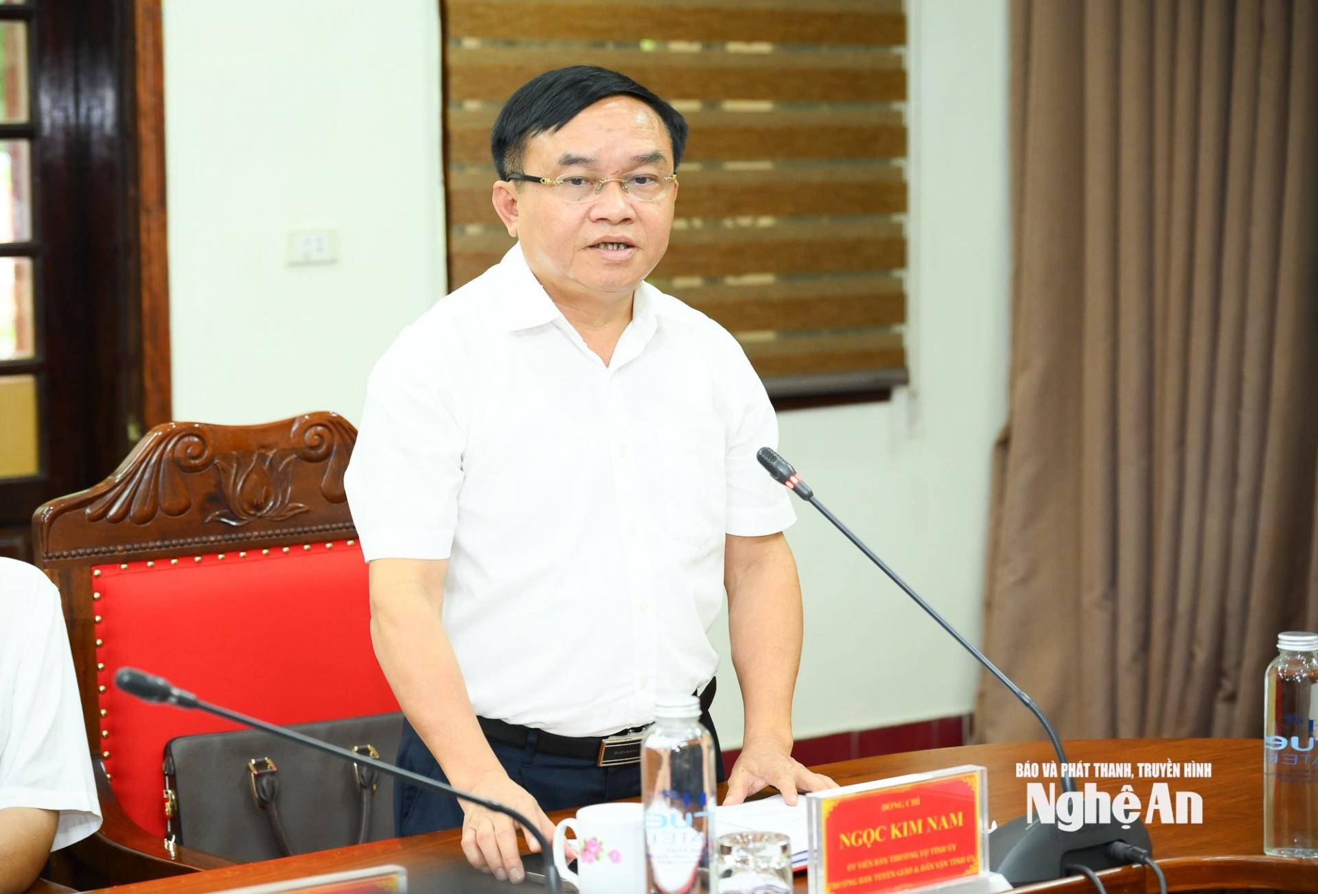| Đồng chí Ngọc Kim Nam - Ủy viên Ban Thường vụ, Trưởng ban Tuyên giáo và Dân vận Tỉnh ủy phát biểu tại cuộc làm việc. |