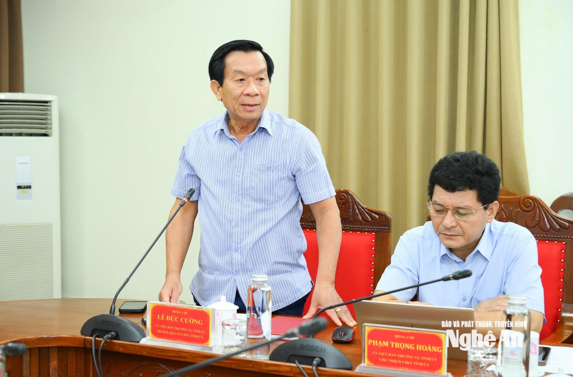 | Đồng chí Lê Đức Cường - Ủy viên Ban Thường vụ, Trưởng Ban Tổ chức Tỉnh ủy phát biểu tại cuộc làm việc. |