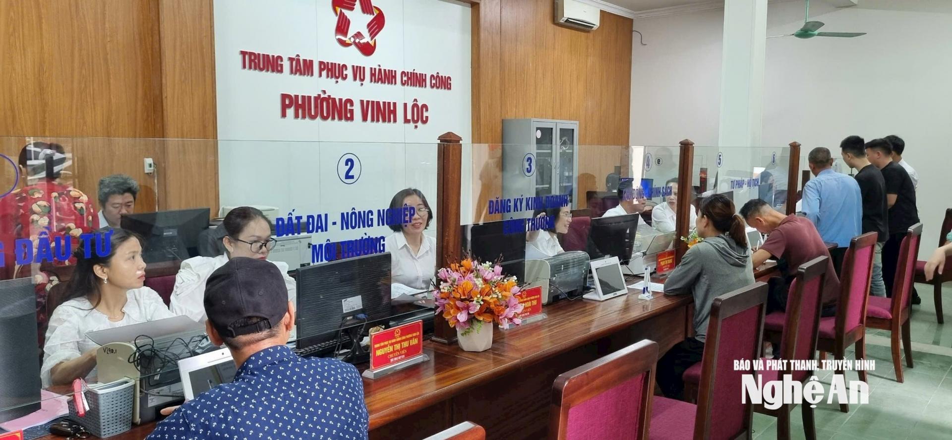 | Cán bộ phường Vinh Lộc giải quyết thủ tục hành chính cho tổ chức, cá nhân. |