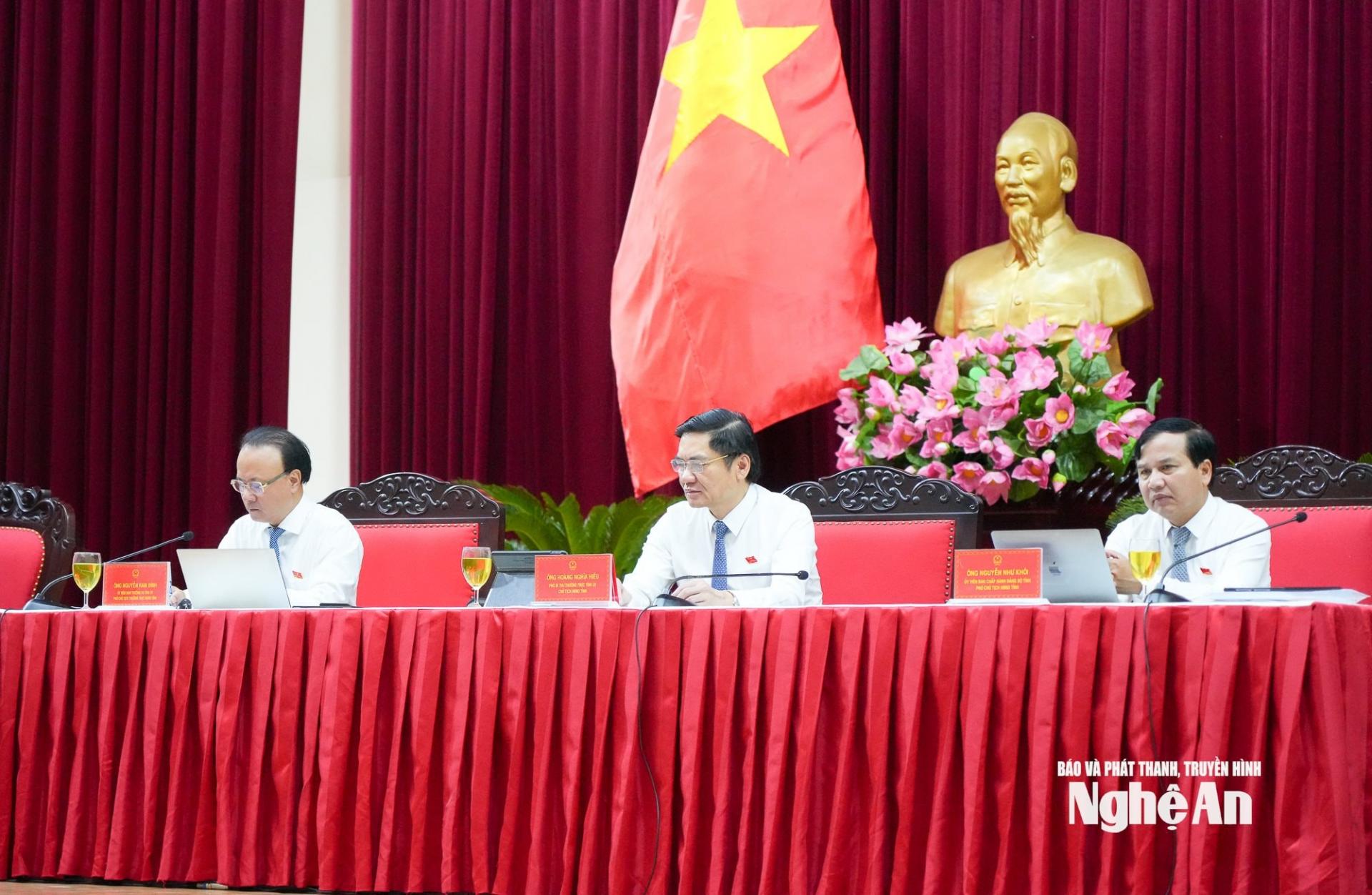Các đồng chí: Hoàng Nghĩa Hiếu - Phó Bí thư Thường trực Tỉnh ủy, Chủ tịch HĐND tỉnh; Nguyễn Nam Đình - Ủy viên Ban Thường vụ Tỉnh ủy, Phó Chủ tịch Thường trực HĐND tỉnh; Nguyễn Như Khôi - Ủy viên Ban Chấp hành Đảng bộ tỉnh, Phó Chủ tịch HĐND tỉnh chủ tọa kỳ họp.