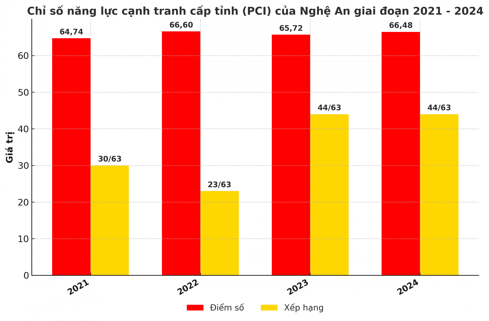 Theo báo cáo trình kỳ họp, năm 2024, Nghệ An đạt 66,48 điểm PCI, tăng nhẹ 0,76 điểm so với năm 2023. Tuy nhiên, tỉnh vẫn giữ nguyên vị trí thứ 44/63 trên bảng xếp hạng toàn quốc, một kết quả khiến nhiều đại biểu băn khoăn.