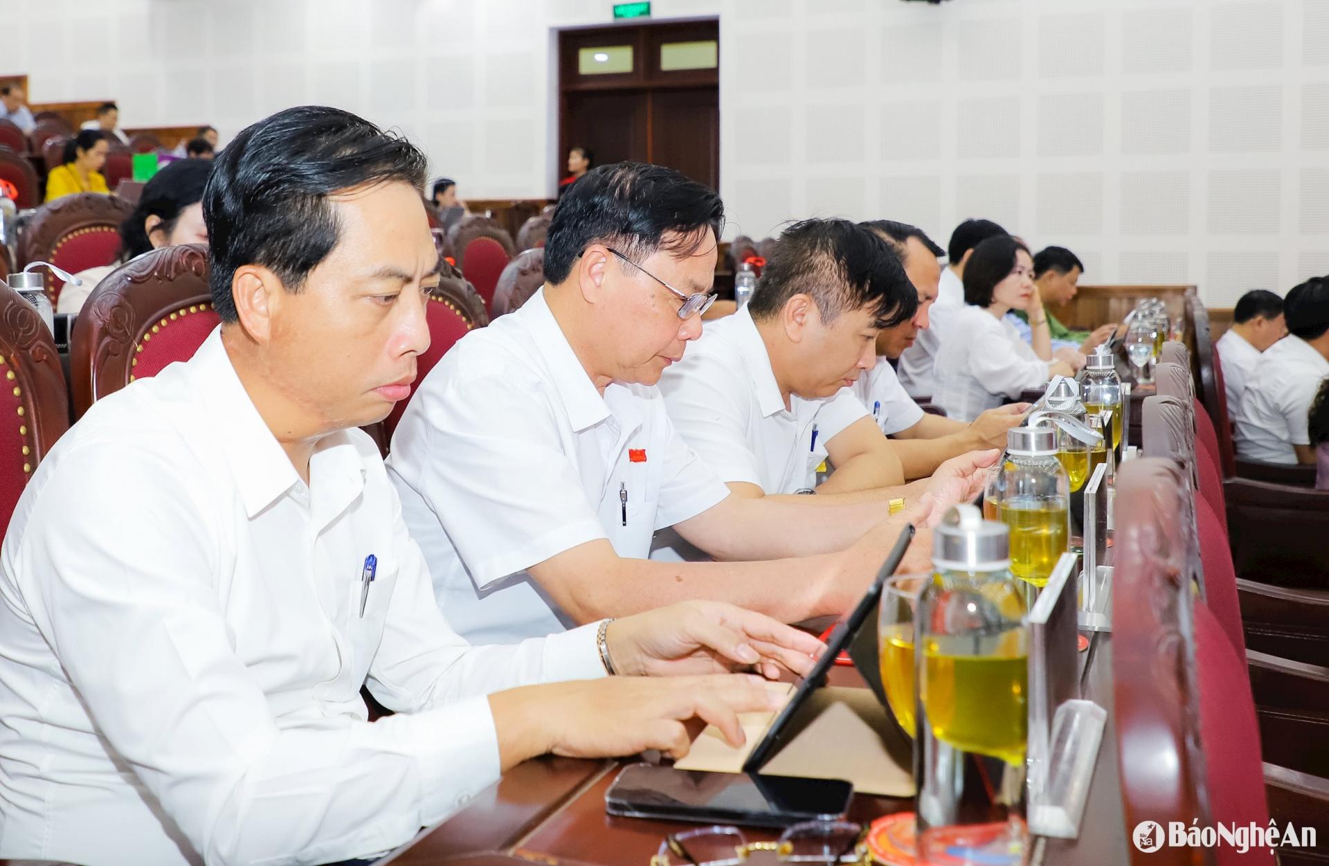 | Các đại biểu HĐND tỉnh biểu quyết thông qua Nghị quyết. |