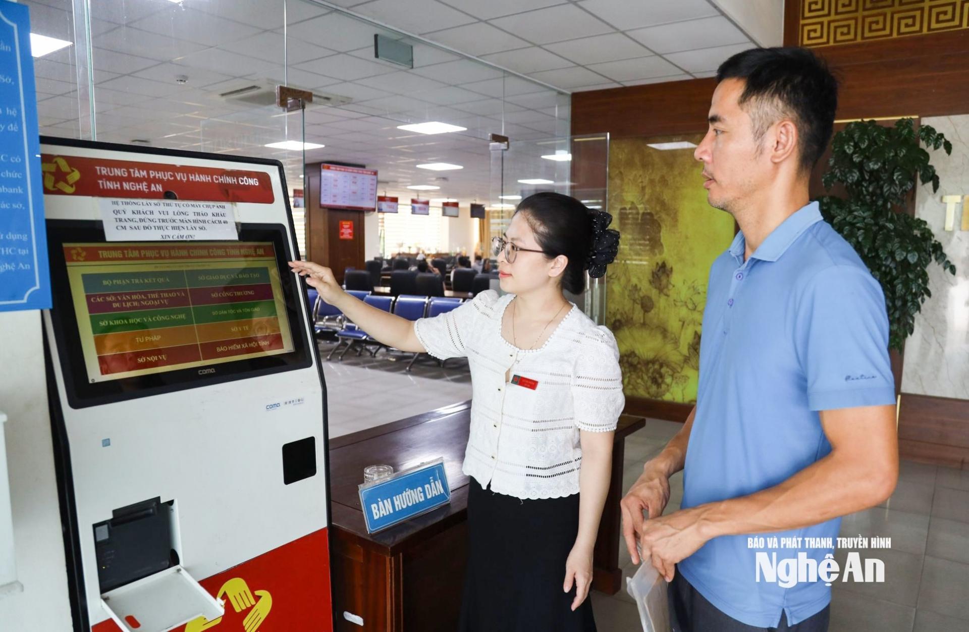| Cán bộ xã Xuân Lâm, Nghệ An hướng dẫn người dân giải quyết thủ tục hành chính. |