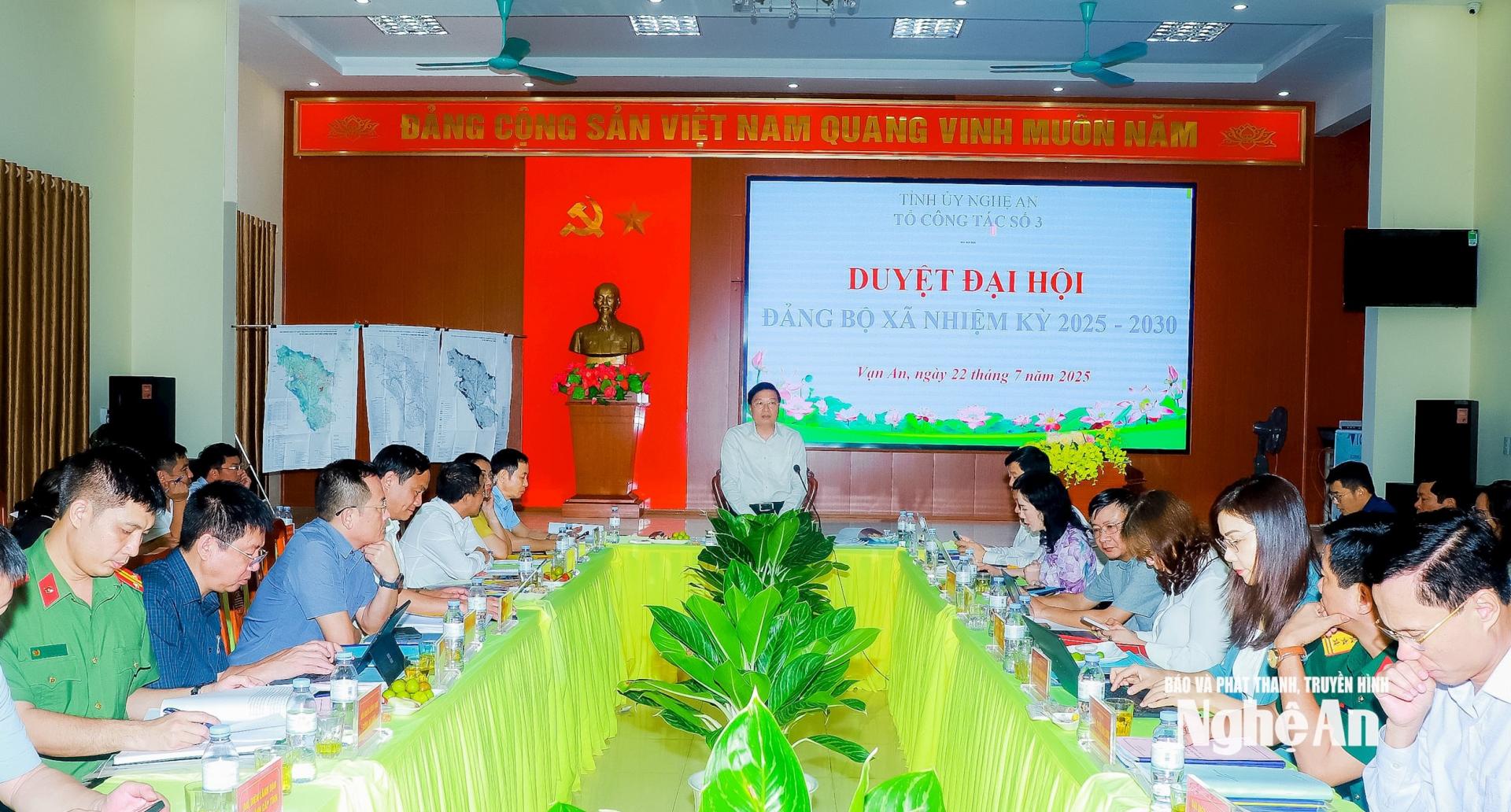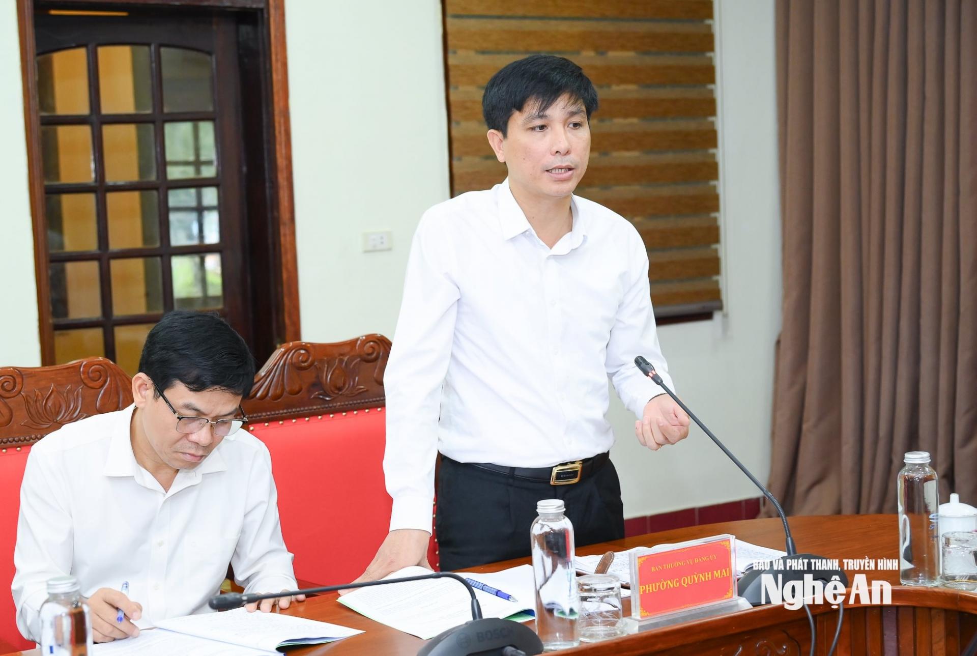 Cùng dự có các thành viên Tổ công tác số 2 theo Kế hoạch của Ban Thường vụ Tỉnh ủy; lãnh đạo Ủy ban Mặt trận Tổ quốc Việt Nam tỉnh và các sở, ngành: Tài chính, Nông nghiệp và Môi trường, Giáo dục và Đào tạo, Y tế, Văn hóa-Thể thao và Du lịch, Khoa học và Công nghệ, Công an tỉnh, Bộ Chỉ huy Quân sự tỉnh, Chi cục Thống kê Nghệ An; các đồng chí Ủy viên Ban Thường vụ Đảng ủy các xã, phường.