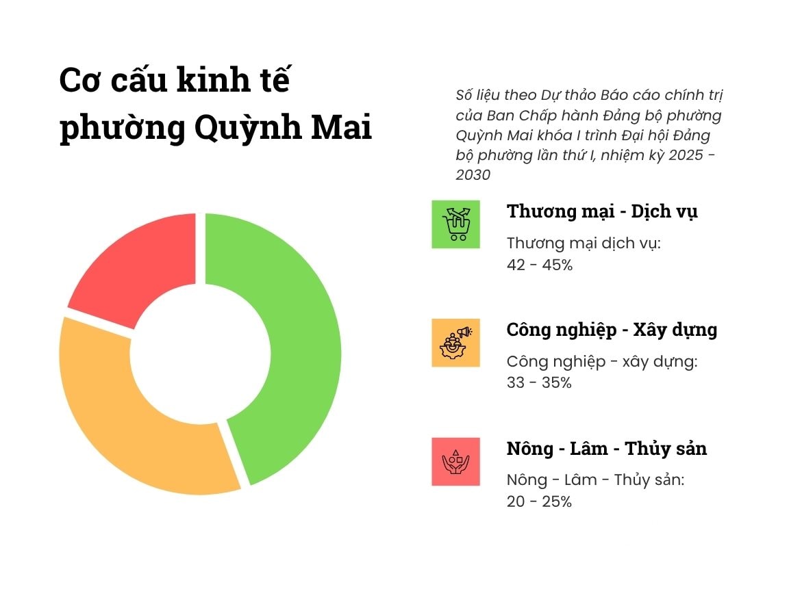 Với phương châm "Đổi mới - Dân chủ - Kỷ cương - Phát triển", Dự thảo Báo cáo chính trị phường Quỳnh Mai đặt mục tiêu xây dựng phường phát triển nhanh, bền vững, trở thành đô thị đạt chuẩn đô thị văn minh.