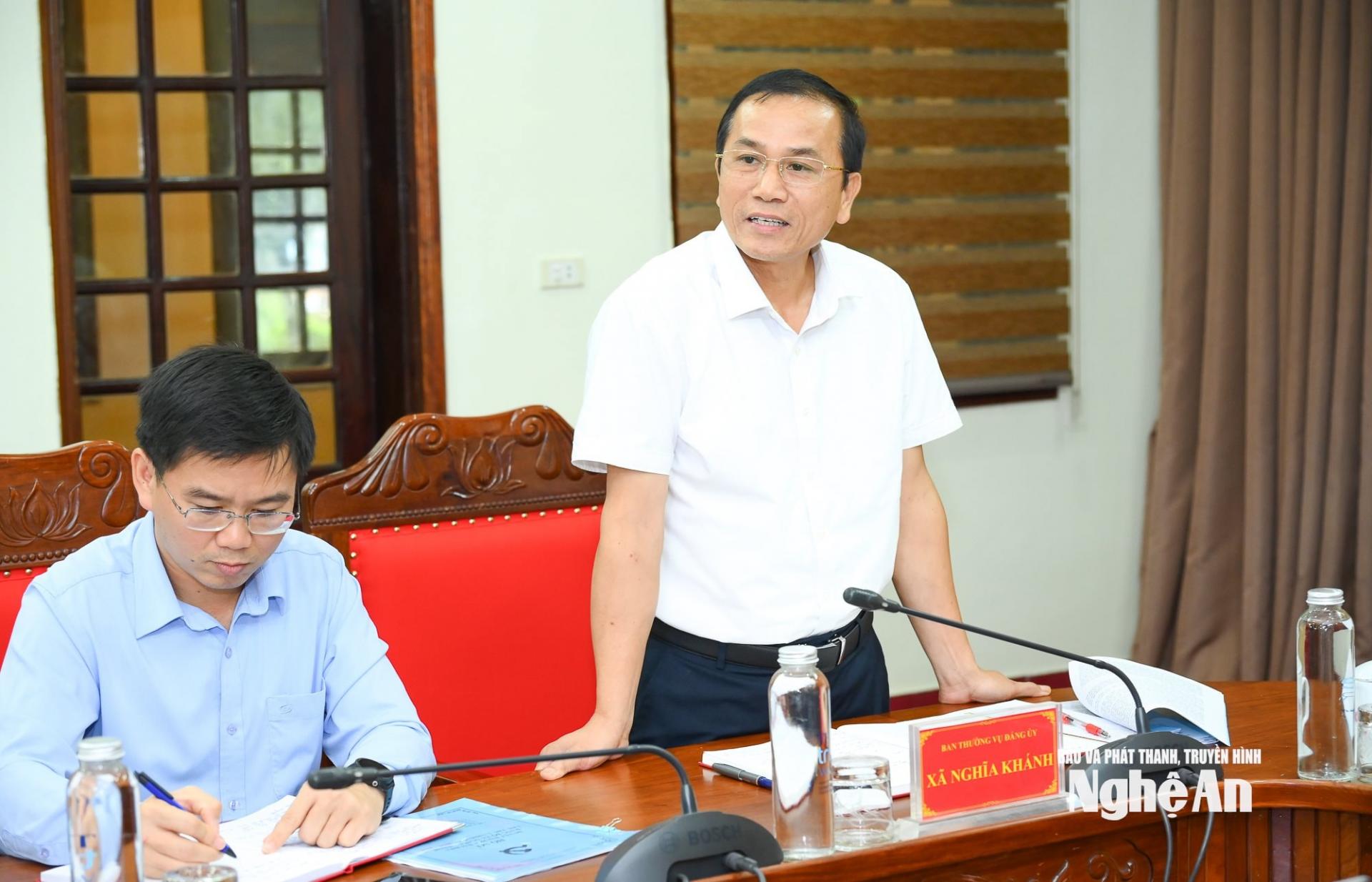 | Đồng chí Ngô Văn Thành - Bí thư Đảng ủy xã Nghĩa Khánh phát biểu tại cuộc làm việc. |