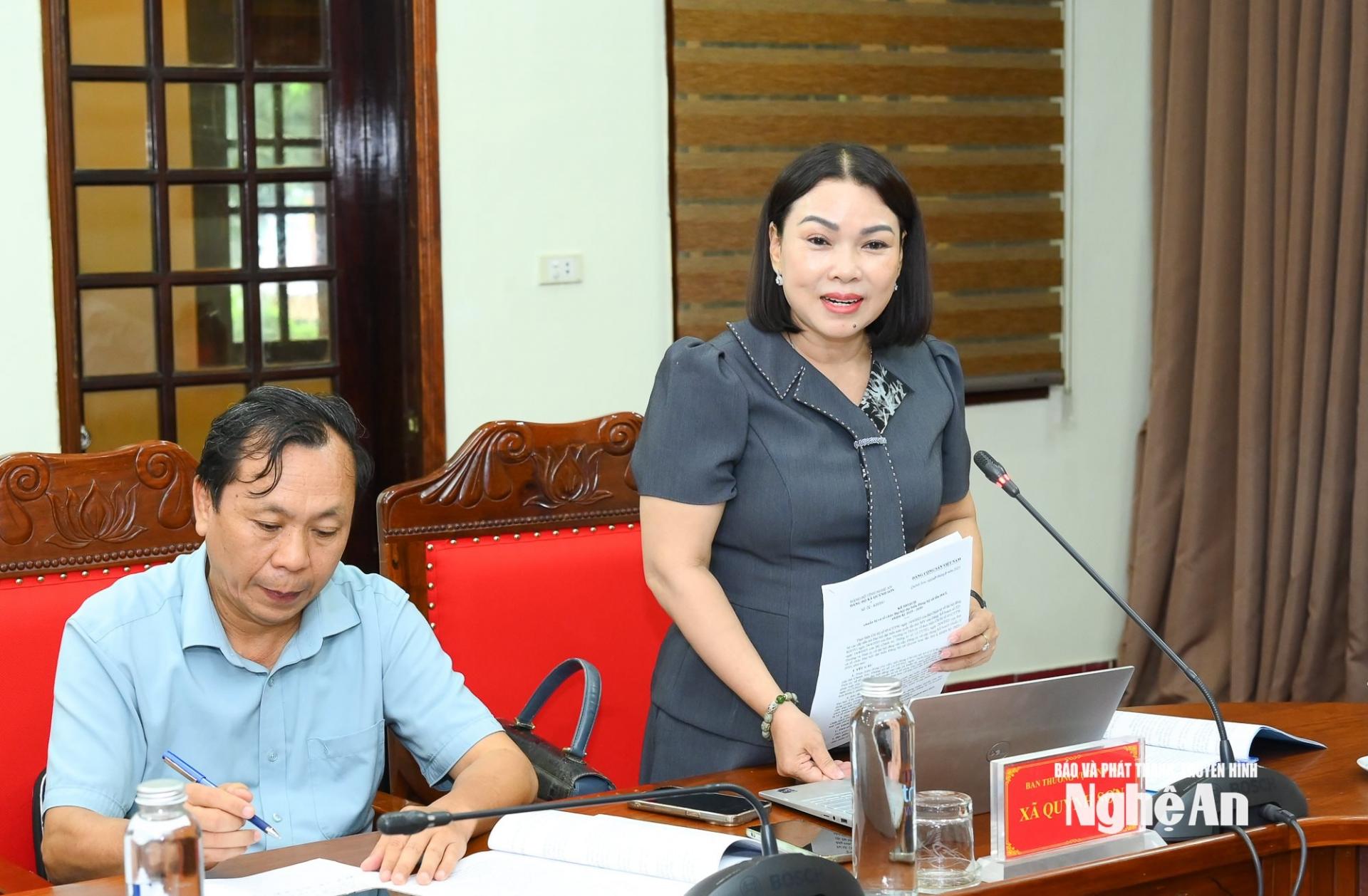 | Đồng chí Phạm Thị Hải Yến - Bí thư Đảng ủy xã Quỳnh Sơn phát biểu tại cuộc làm việc. |