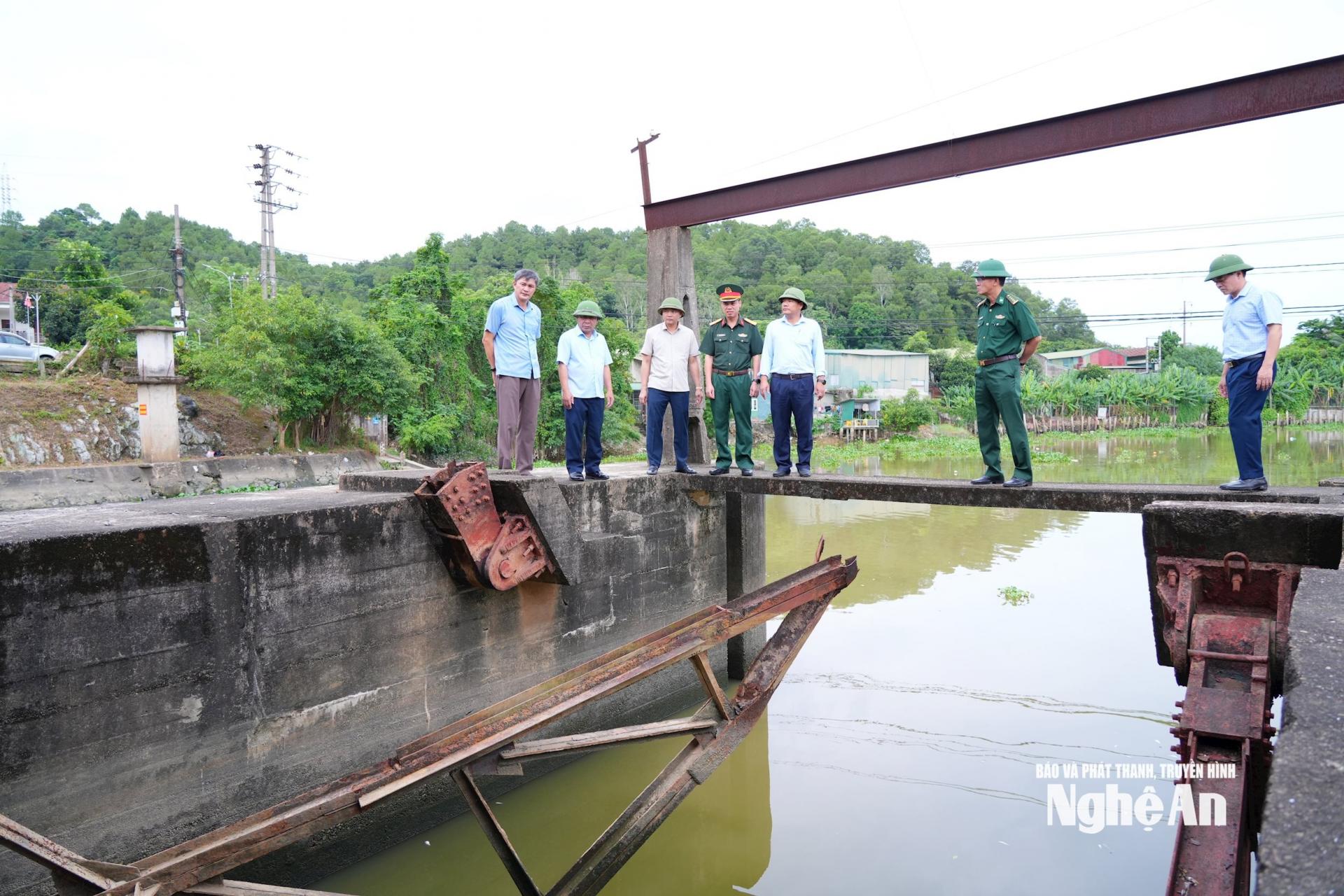 Phó Chủ tịch UBND Nguyễn Văn Đệ đã kiểm tra công tác vận hành tiêu úng của cống Nghi Quang. Được xây dựng và đưa vào sử dụng hàng chục năm nay nên khả năng tiêu úng của công trình hiện kém hiệu quả.