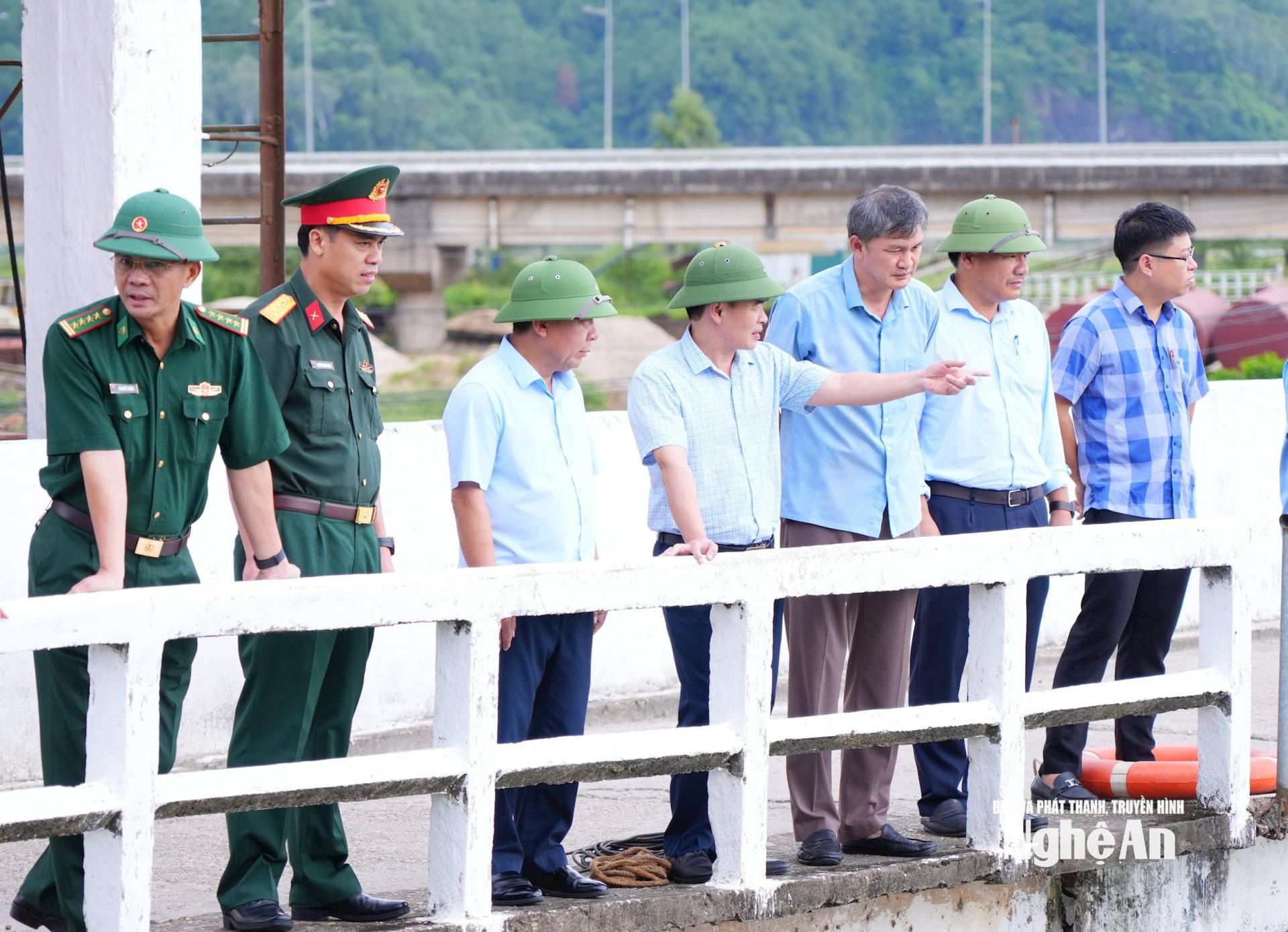 | Phó Chủ tịch UBND tỉnh Nguyễn Văn Đệ kiểm tra bara Bến Thủy. Ảnh: Thành Cường |