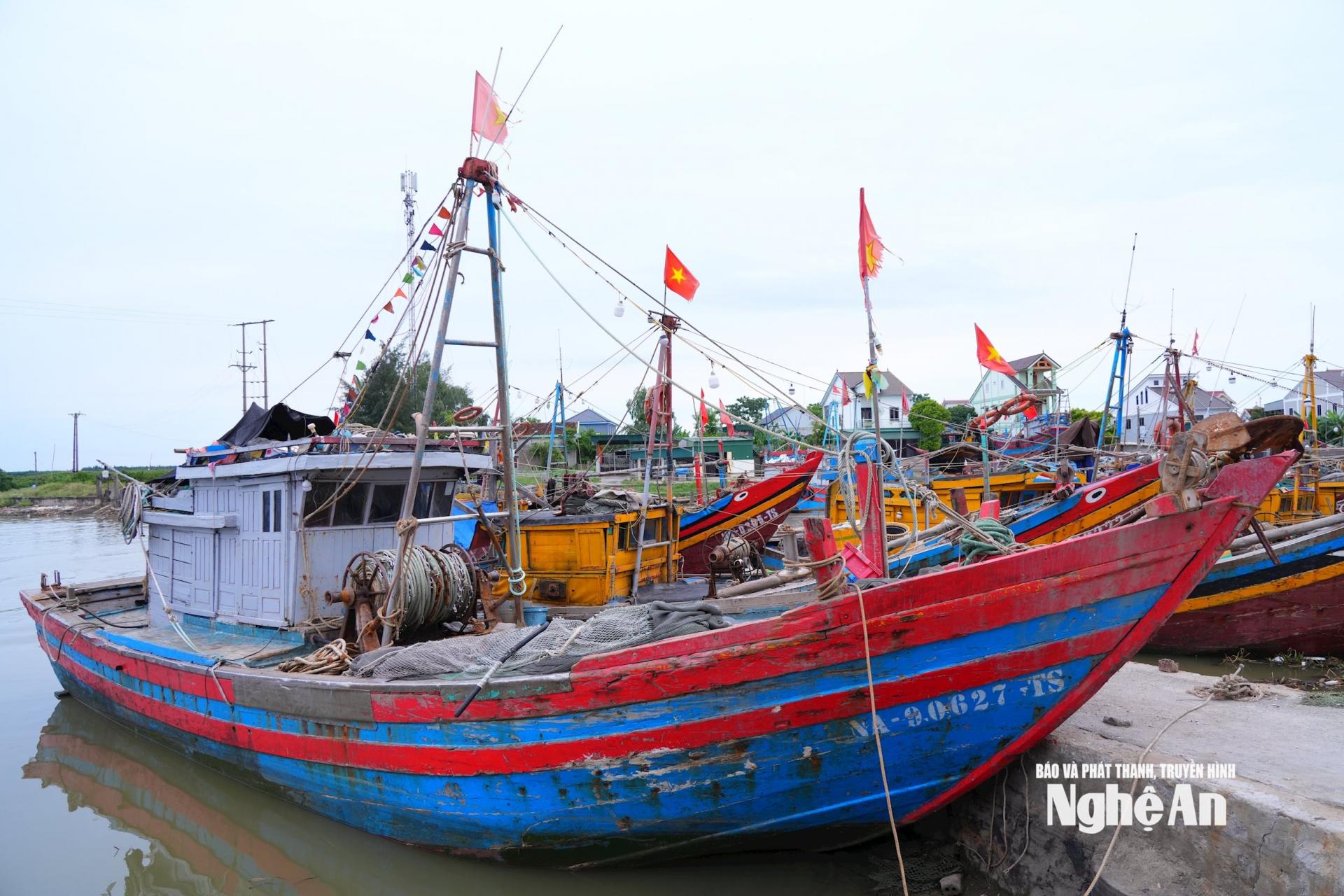 | Tàu cá neo đậu trong trong khu vực tránh trú bão. Ảnh: Thành Cường |
