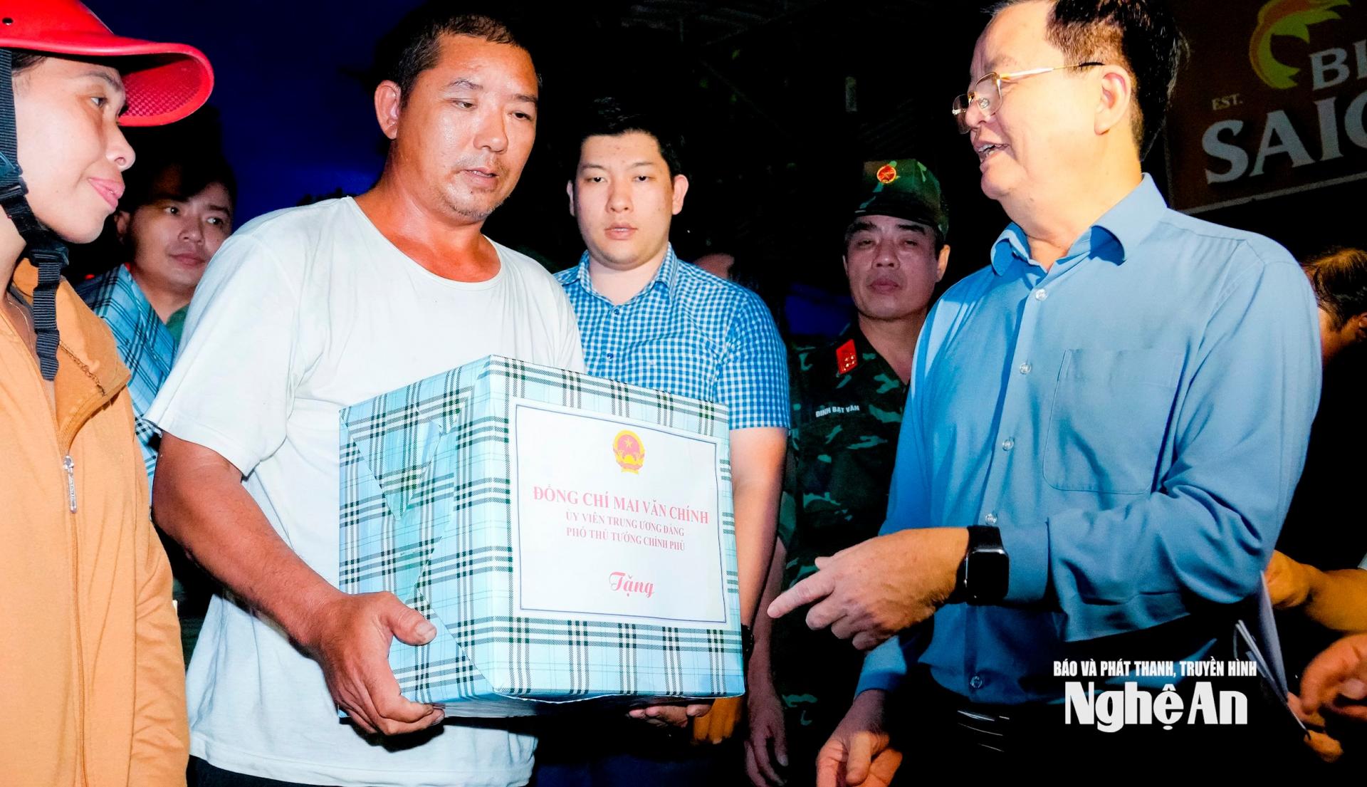 Tiếp đó, Phó Thủ tướng Chính phủ Mai Văn Chính đã đến thăm, động viên, tặng quà cho 3 hộ dân bị ngập nhà hoàn toàn ở thôn Liên Tân, xã Con Cuông.