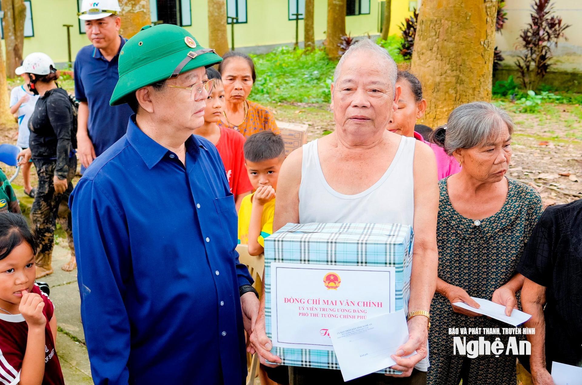 Tiếp đó, Phó Thủ tướng Chính phủ Mai Văn Chính đã đến thăm hỏi, động viên, trao quà đến hơn 300 hộ dân, với gần 1.000 nhân khẩu đang được sơ tán đến Vườn Quốc gia Pù Mát.