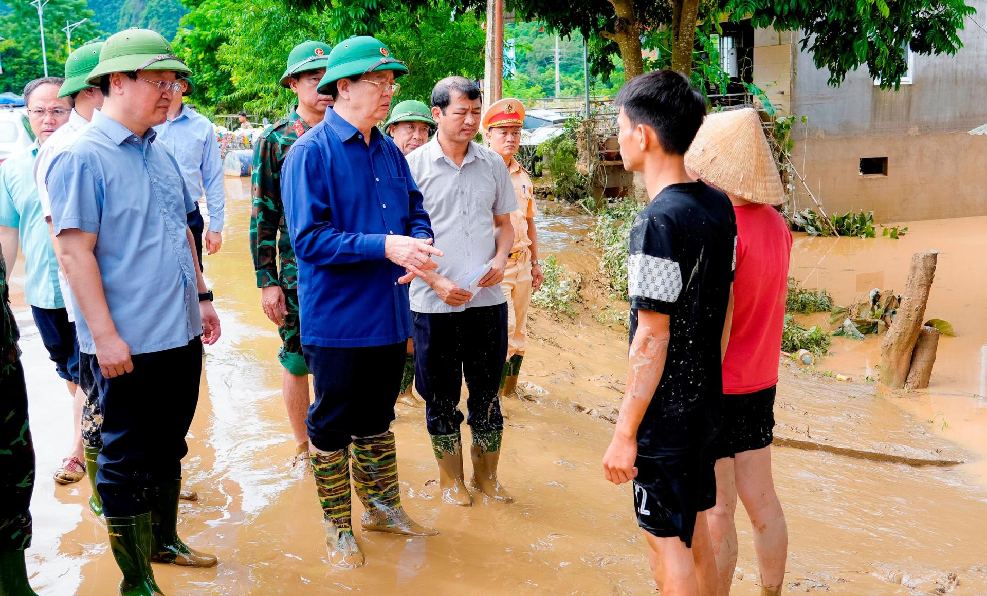 Thăm hỏi đời sống, động viên tinh thần, chia sẻ những mất mát về tài sản của người dân, cũng như những thiếu thốn, Phó Thủ tướng cho rằng, nhiệm vụ trước hết, trên hết của chính quyền các cấp là bảo đảm an toàn tính mạng, tài sản cho người dân.