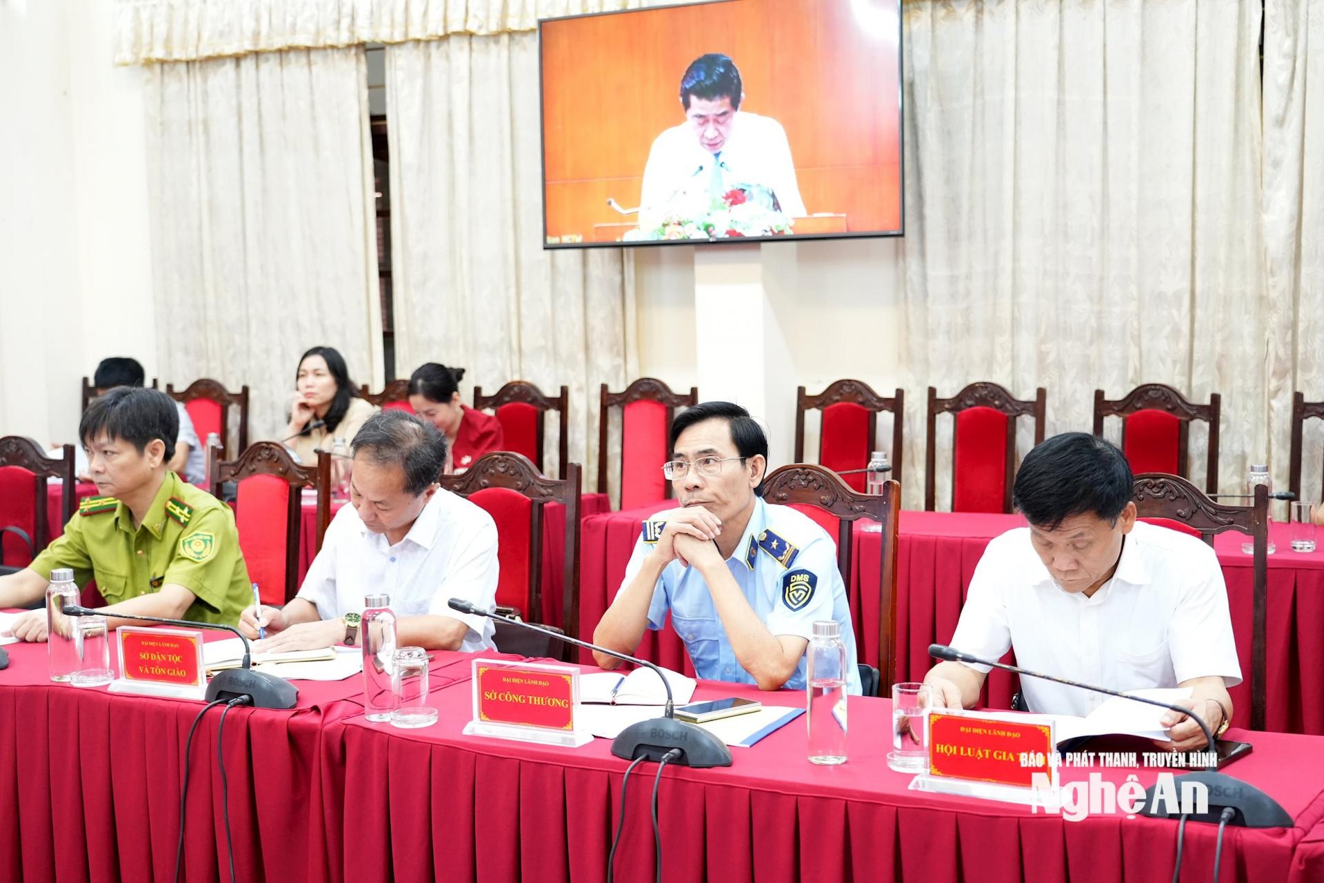 Tại điểm cầu Nghệ An, đồng chí Võ Thị Minh Sinh – Phó Bí thư Tỉnh uỷ, Chủ tịch Uỷ ban Mặt trận Tổ quốc tỉnh, Trưởng đoàn đại biểu Quốc hội tỉnh chủ trì. Cùng dự có đồng chí Hồ Lê Ngọc – Uỷ viên Ban Thường vụ, Trưởng ban Nội chính Tỉnh uỷ; đại diện các sở, ngành liên quan.