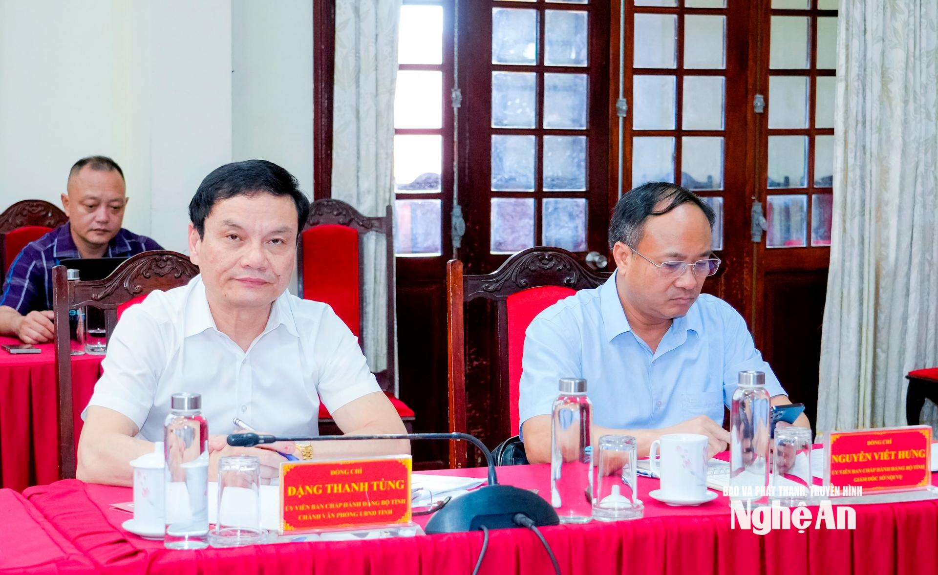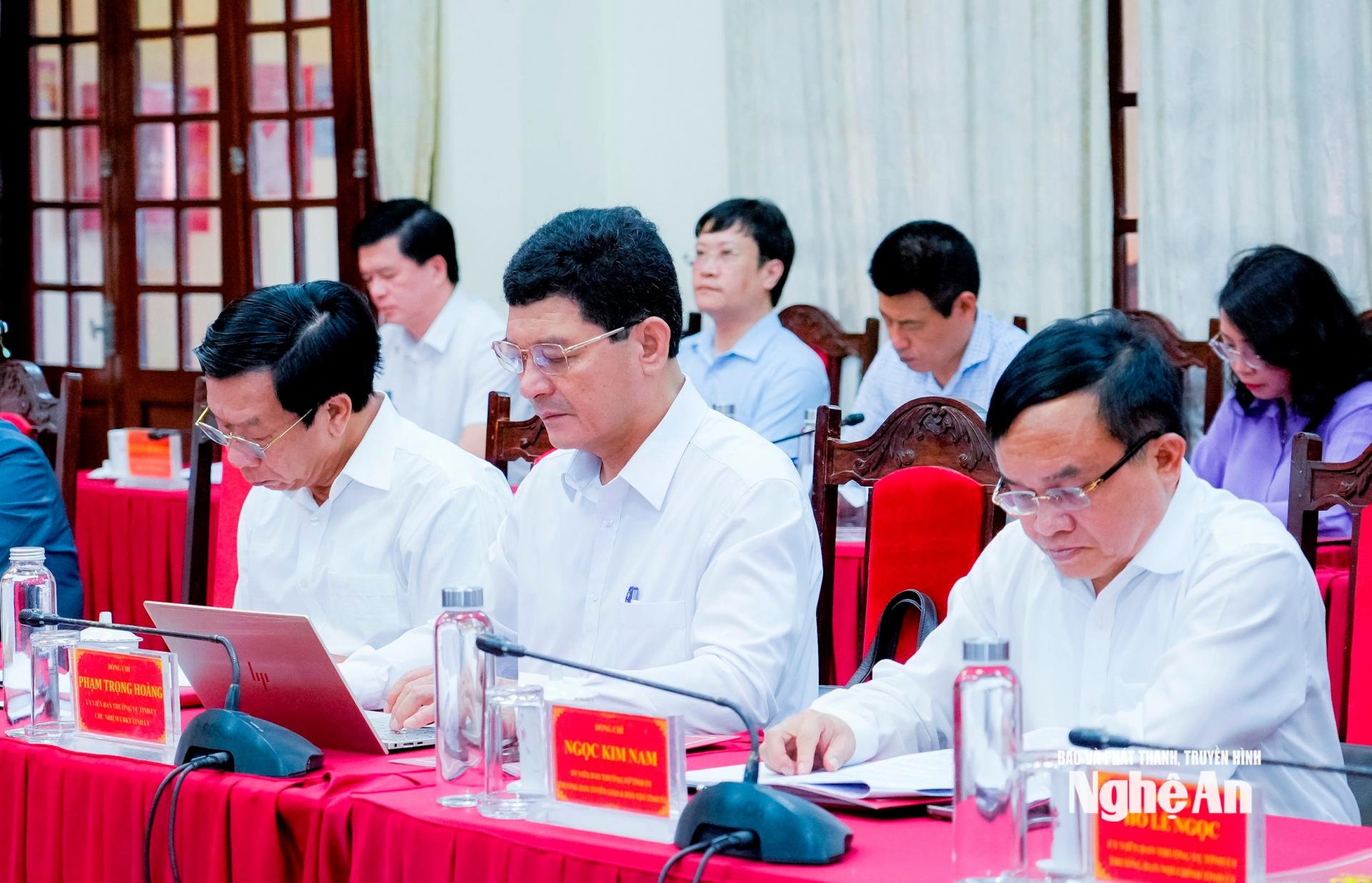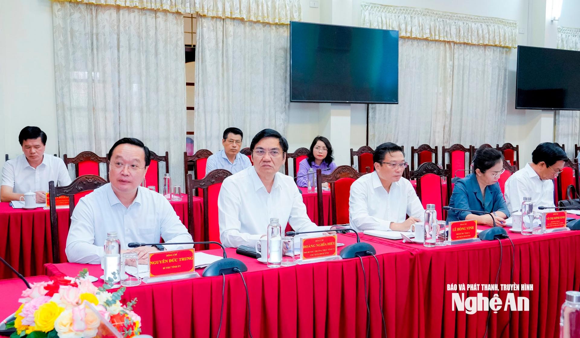 | Các đồng chí Thường trực Tỉnh ủy Nghệ An tại cuộc làm việc. Ảnh: Phạm Bằng |