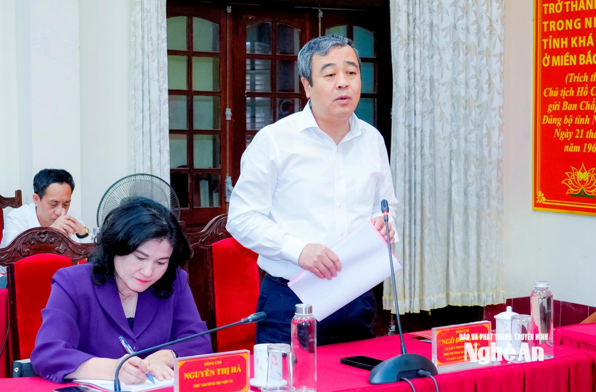 Trưởng ban Tuyên giáo và Dân vận Trung ương đánh giá cao những nỗ lực, quyết tâm và hành động của tỉnh Nghệ An trong việc cụ thể hóa các chủ trương lớn của Trung ương vào cuộc sống. Đồng chí bày tỏ niềm tin và kỳ vọng tỉnh Nghệ An tiếp tục phát huy truyền thống cách mạng, xứng đáng là quê hương của Chủ tịch Hồ Chí Minh để vừa mẫu mực về phát triển văn hóa, vừa là một cực tăng trưởng tầm quốc gia như Tổng Bí thư Tô Lâm kỳ vọng, nhắn nhủ.