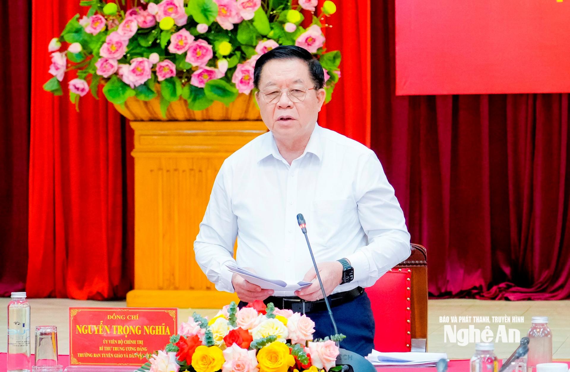 Kết luận cuộc làm việc, đồng chí Nguyễn Trọng Nghĩa - Ủy viên Bộ Chính trị, Bí thư Trung ương Đảng, Trưởng ban Tuyên giáo và Dân vận Trung ương ghi nhận và đánh giá cao những kết quả bước đầu mà tỉnh Nghệ An đã đạt được trong triển khai chính quyền địa phương 2 cấp.