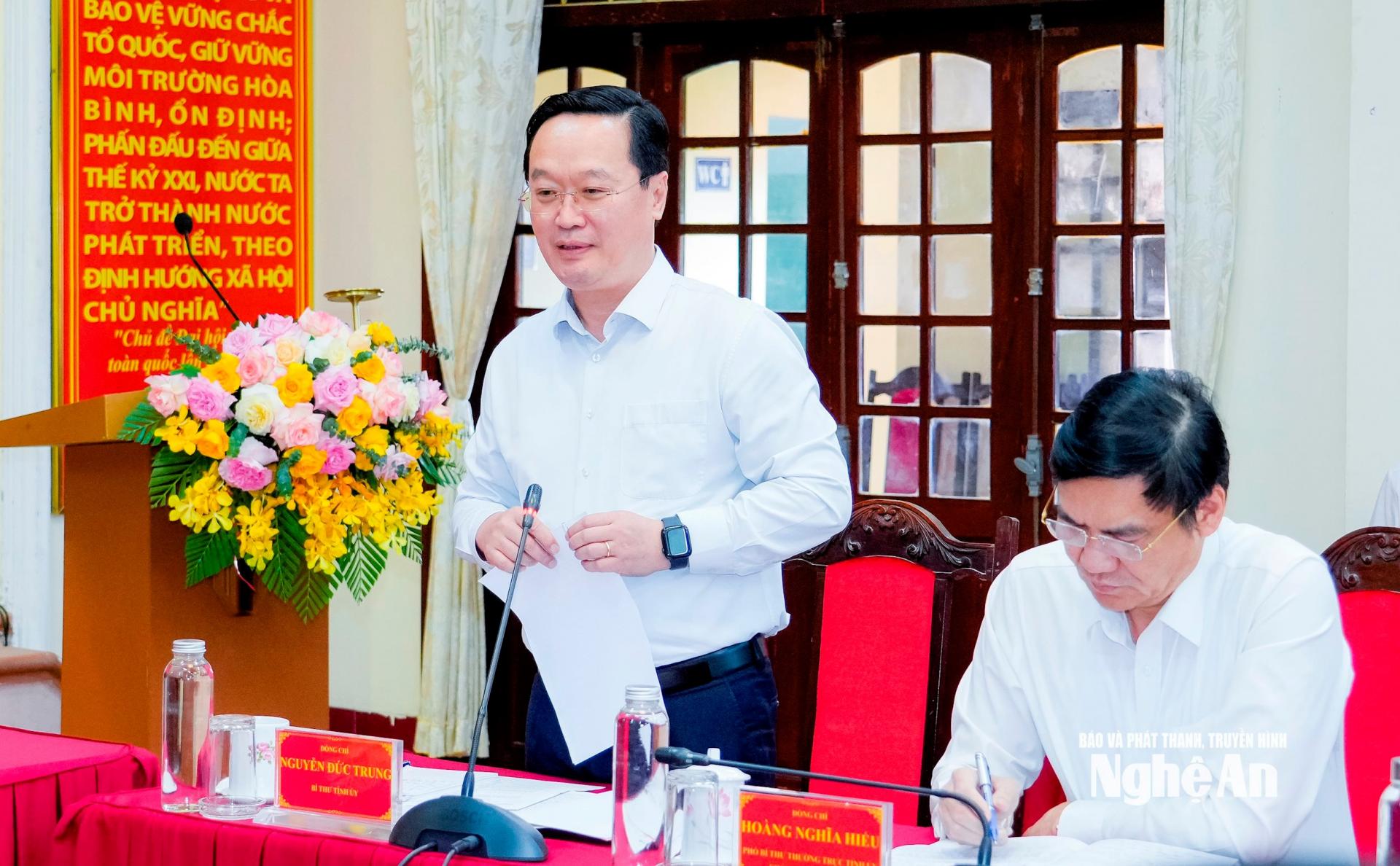 Thay mặt Ban Thường vụ Tỉnh ủy, Bí thư Tỉnh ủy Nghệ An Nguyễn Đức Trung trân trọng cảm ơn và khẳng định, tỉnh tiếp thu nghiêm túc, đầy đủ các chỉ đạo sâu sắc, toàn diện của đồng chí Trưởng ban Tuyên giáo và Dân vận Trung ương; ý kiến các đồng chí trong đoàn, coi đây là định hướng quan trọng để cụ thể hóa thành các nội dung để triển khai các nhiệm vụ trọng tâm trong thời gian tới, đặc biệt từ nay đến hết năm 2025, trong đó tiếp tục triển khai vận hành có hiệu quả chính quyền địa phương 2 cấp và các đơn vị hành chính cấp xã theo tinh thần “hiệu năng, hiệu lực, hiệu quả, phục vụ tốt nhất người dân”…