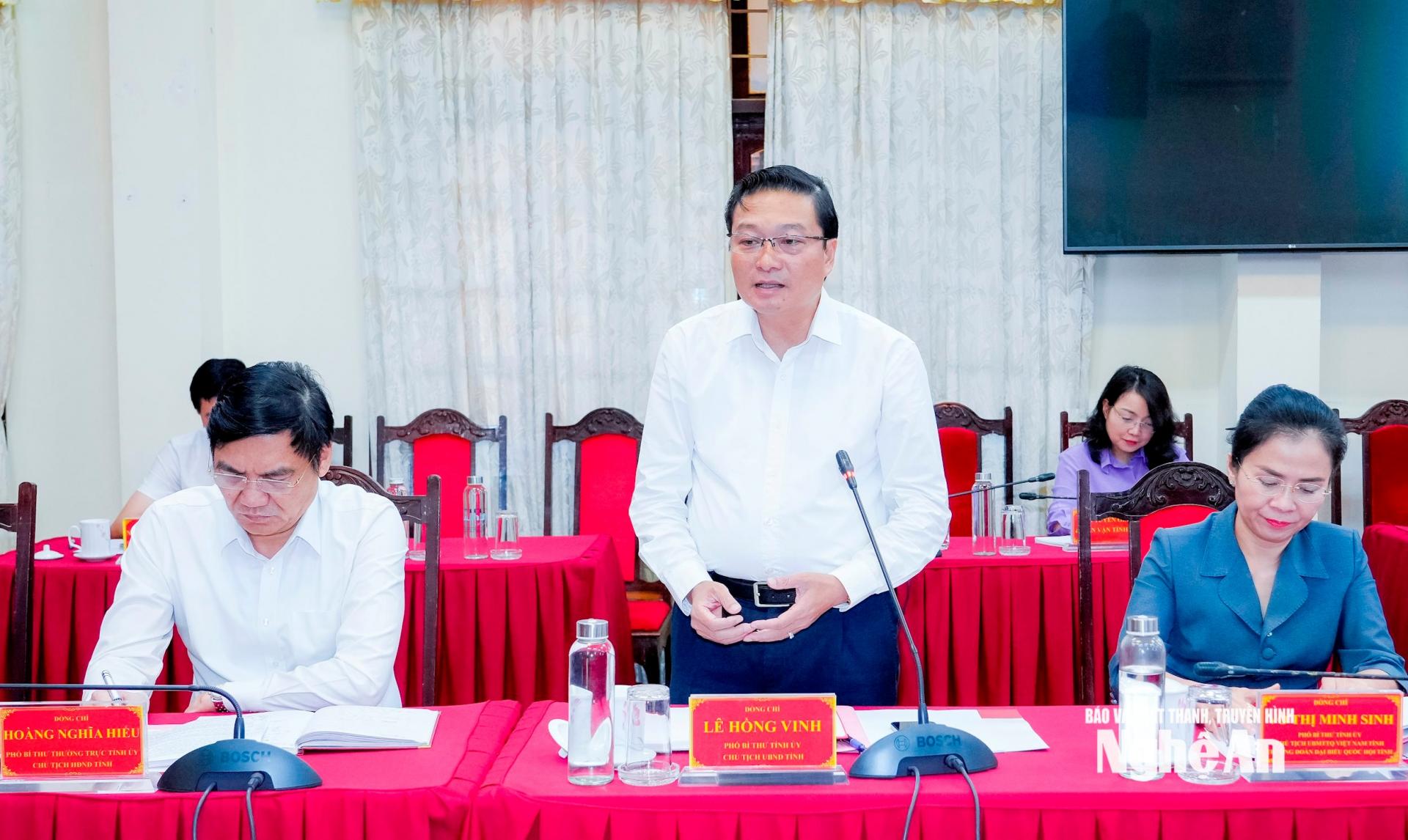 | Đồng chí Lê Hồng Vinh - Phó Bí thư Tỉnh ủy, Chủ tịch UBND tỉnh phát biểu tại cuộc làm việc. Ảnh: Phạm Bằng |