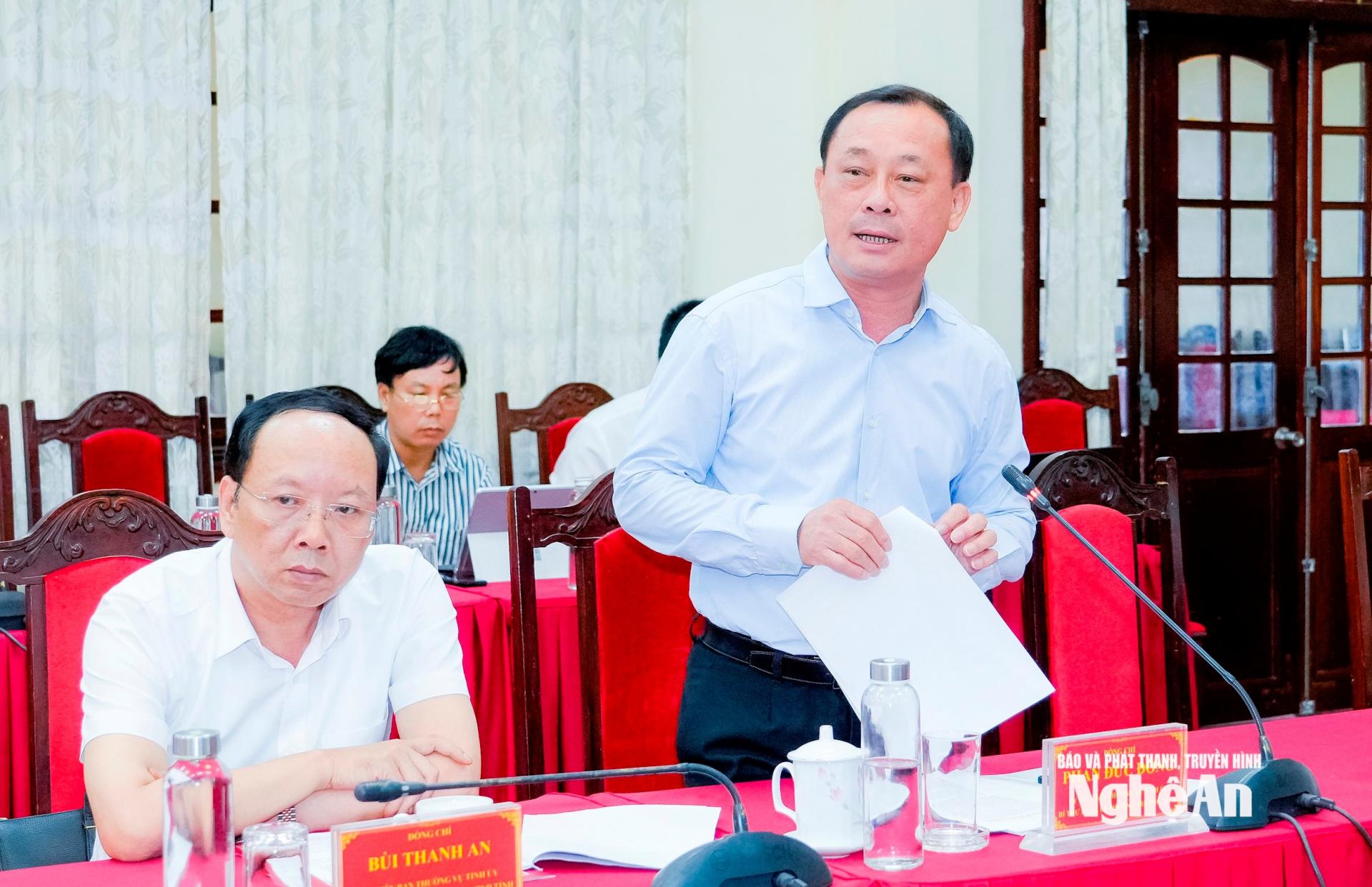 | Đồng chí Phan Đức Đồng - Ủy viên Ban Thường vụ Tỉnh ủy, Bí thư Đảng ủy, Chủ tịch HĐND phường Trường Vinh phát biểu tại cuộc làm việc. Ảnh: Phạm Bằng |