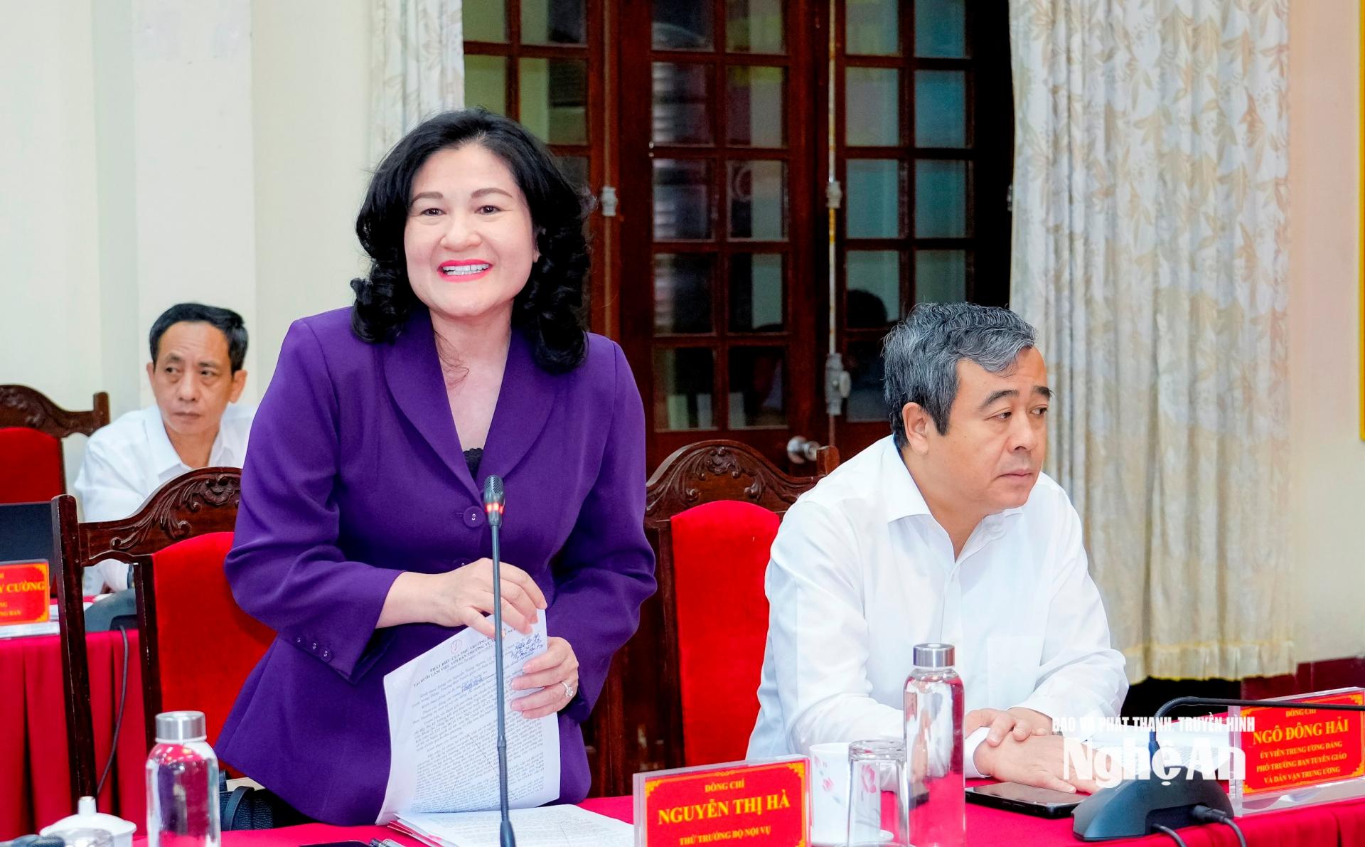 | Đồng chí Nguyễn Thị Hà - Thứ trưởng Bộ Nội vụ phát biểu tại cuộc làm việc. Ảnh: Phạm Bằng |