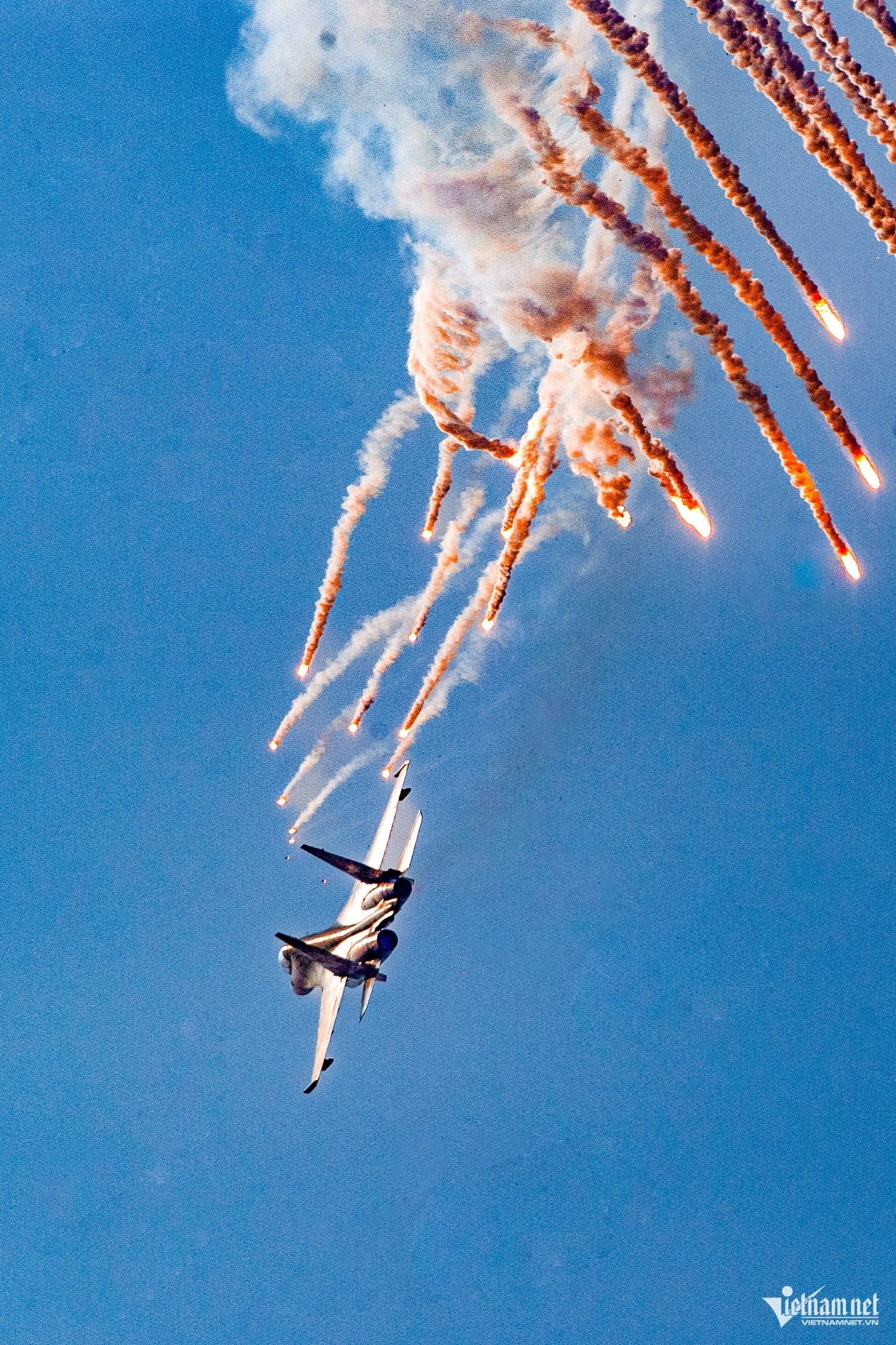| Những chiếc Su30Mk2 biểu diễn, thả mồi bẫy nhiệt trên bầu trời tại lễ kỷ niệm 50 năm Ngày thống nhất đất nước (30/4/1975 - 30/4/2025). Ảnh: Hoàng Hà - Thế Bằng |