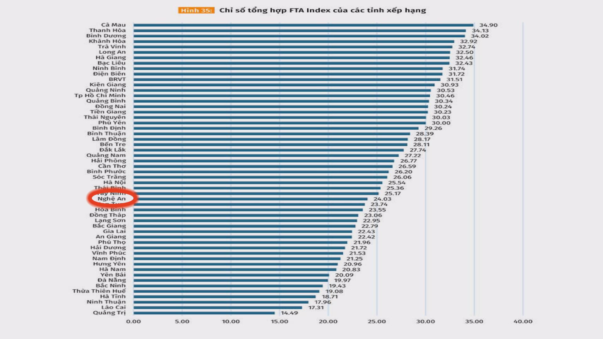 | Nghệ An xếp vị trí thứ 33 bộ chỉ số xếp hạng. |