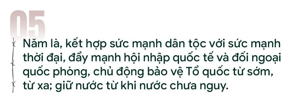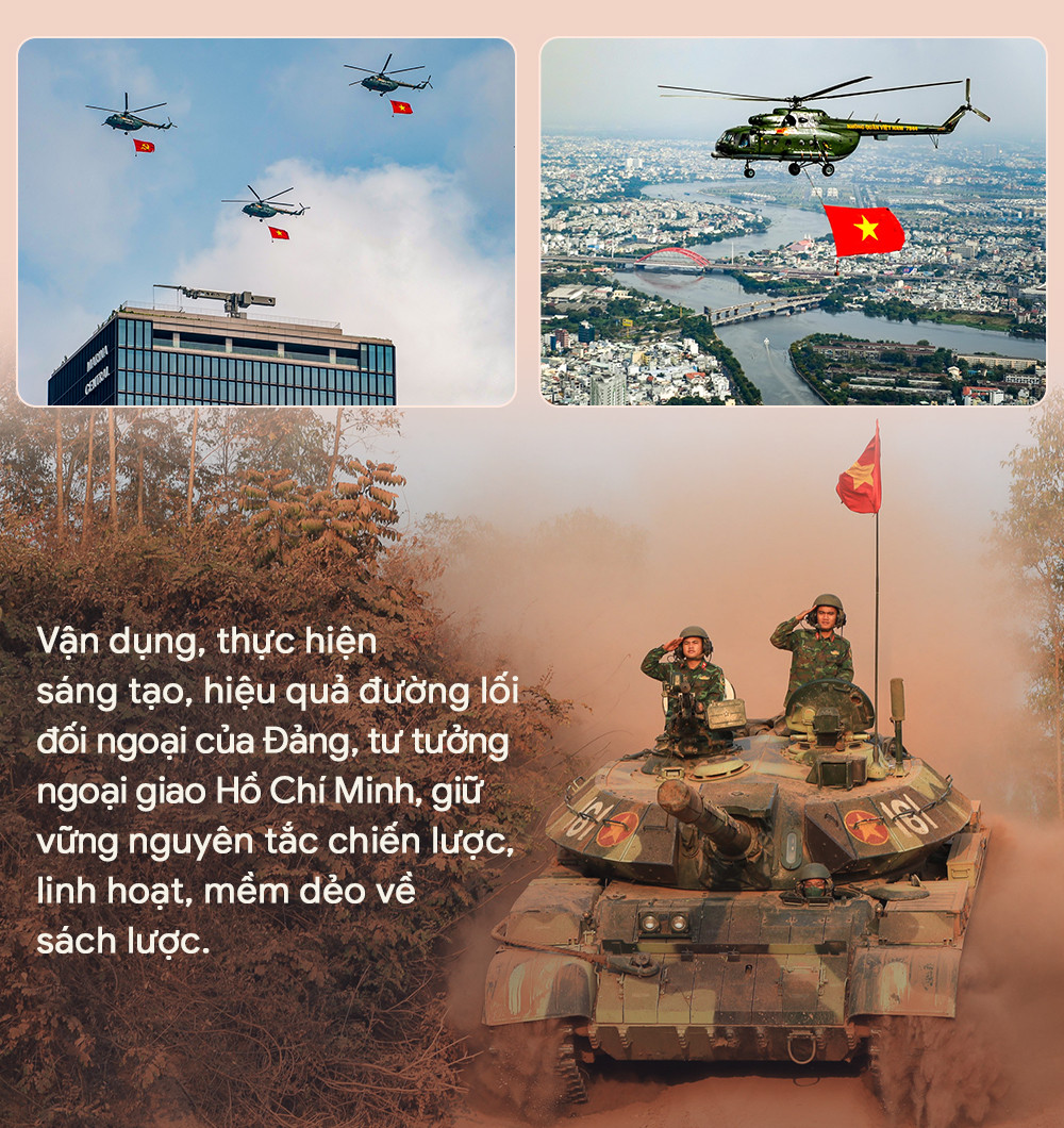 Vận dụng, thực hiện sáng tạo, hiệu quả đường lối đối ngoại của Đảng, tư tưởng ngoại giao Hồ Chí Minh, giữ vững nguyên tắc chiến lược, linh hoạt, mềm dẻo về sách lược; kiên quyết, kiên trì đấu tranh giải quyết mâu thuẫn, tranh chấp, bất đồng bằng biện pháp hòa bình, trên cơ sở các nguyên tắc của Hiến chương Liên hợp quốc và luật pháp quốc tế; tránh xung đột, đối đầu hoặc để bị cô lập, phụ thuộc; kiên định đường lối “ngoại giao cây tre” trường phái Việt Nam và chính sách quốc phòng “bốn không”; tích cực, chủ động tham gia lực lượng gìn giữ hòa bình Liên hợp quốc và các hoạt động nhân đạo quốc tế, góp phần khẳng định vai trò trách nhiệm và nâng cao uy tín, vị thế của đất nước, của Quân đội trên trường quốc tế.